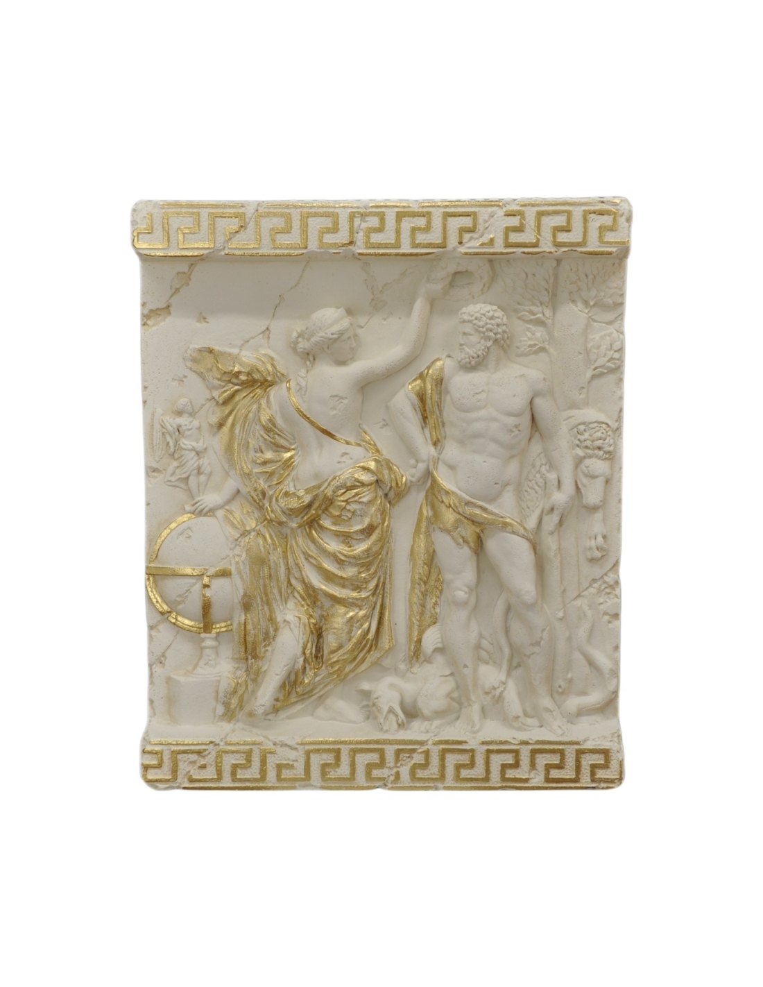 Ce bas-relief en résine de haute qualité capture une scène captivante de la mythologie grecque et classique, mettant en scène un homme et une femme dans une pose dynamique. Sa finition sophistiquée, effet marbre, avec des détails dorés, renforce son côté authentique et ancien. Sa construction durable et résistante aux intempéries en fait une décoration polyvalente, parfaite pour ajouter une touche de grandeur historique à votre maison, votre bar ou votre jardin. Cette œuvre d'art remarquable est conçue pour durer et conservera sa beauté pendant des années, qu'elle soit exposée à l'intérieur ou à l'extérieur.