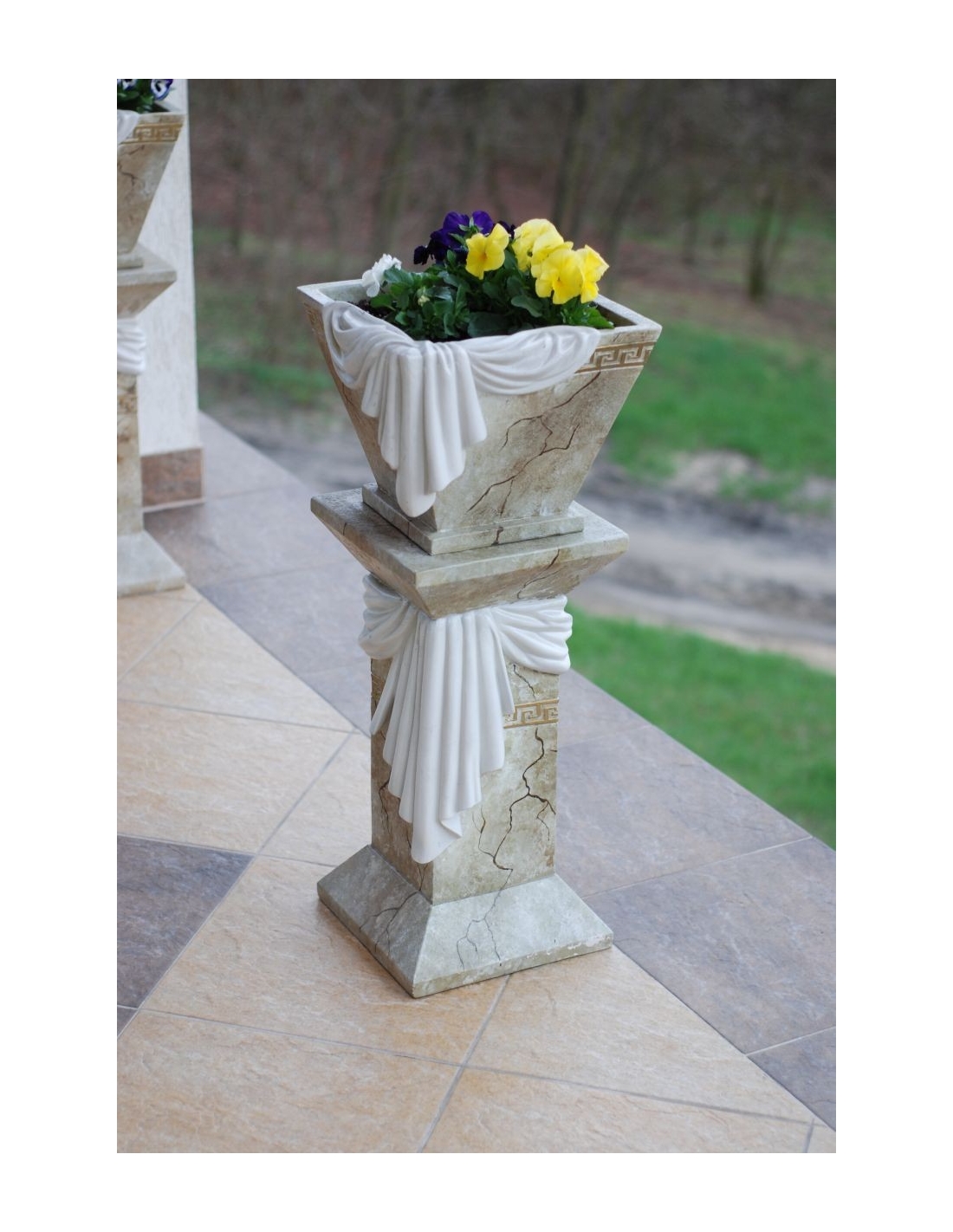 Colonne imitation marbre grec avec draperie décorative et détails dorés, H: 0,8 m