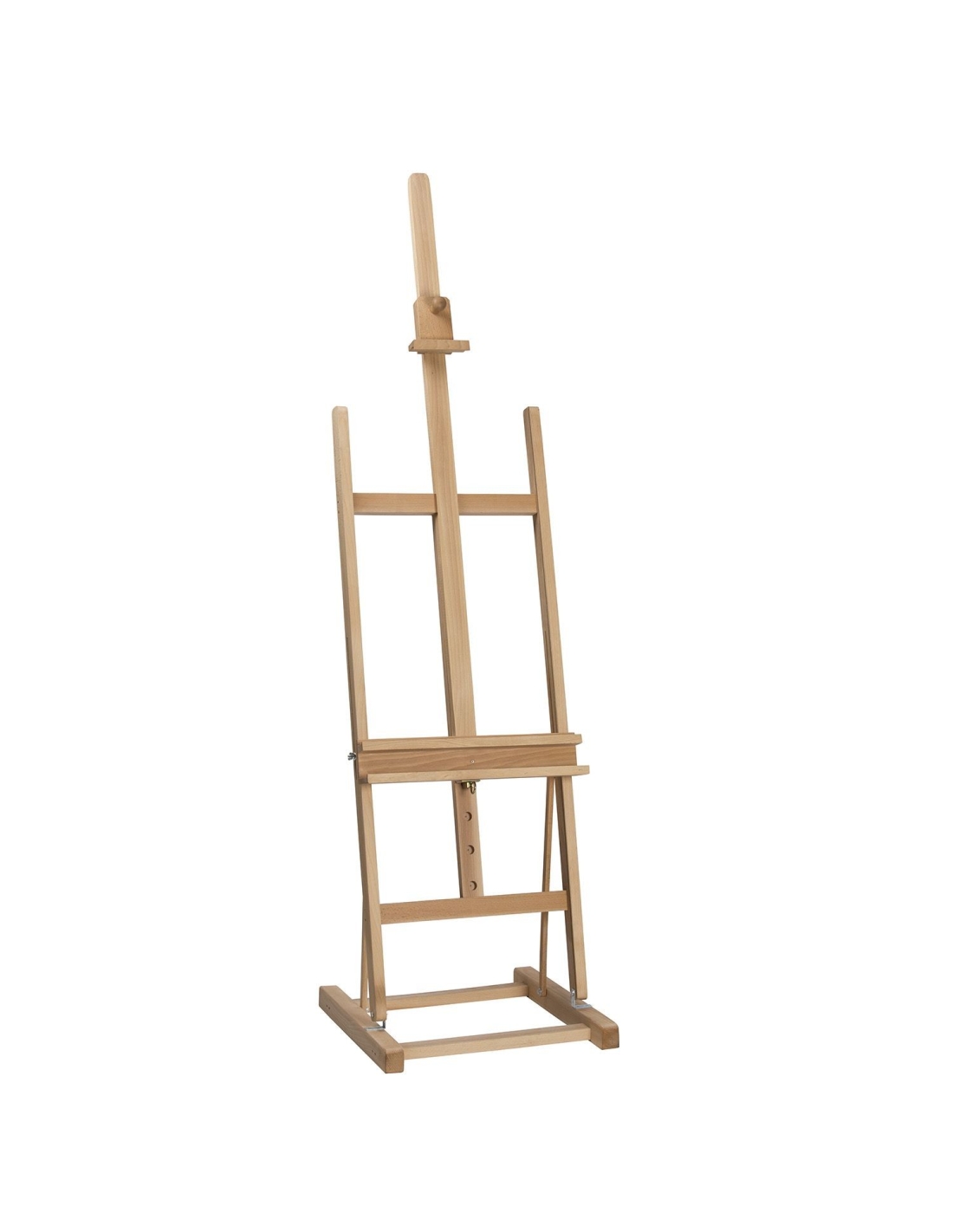 Découvrez la fusion parfaite entre forme et fonctionnalité avec notre chevalet d'atelier, méticuleusement fabriqué à partir de bois de hêtre massif imprégné. Sa construction robuste et solide, pesant environ 7,5 kg, garantit une stabilité exceptionnelle pour tous vos besoins créatifs et d'exposition. Le système innovant de fermoirs métalliques et de mécanisme de verrouillage permet un réglage précis de la hauteur, s'adaptant ainsi à une large gamme de toiles et de cadres. Une tablette à deux niveaux, caractéristique distinctive de ce modèle, offre un soutien suffisant pour les œuvres de grande taille, ce qui en fait le choix préféré des galeries, des musées et des artistes professionnels. Ce chevalet n'est pas seulement un outil, mais un partenaire fidèle dans votre parcours artistique, offrant une présentation sûre et élégante de votre travail.
