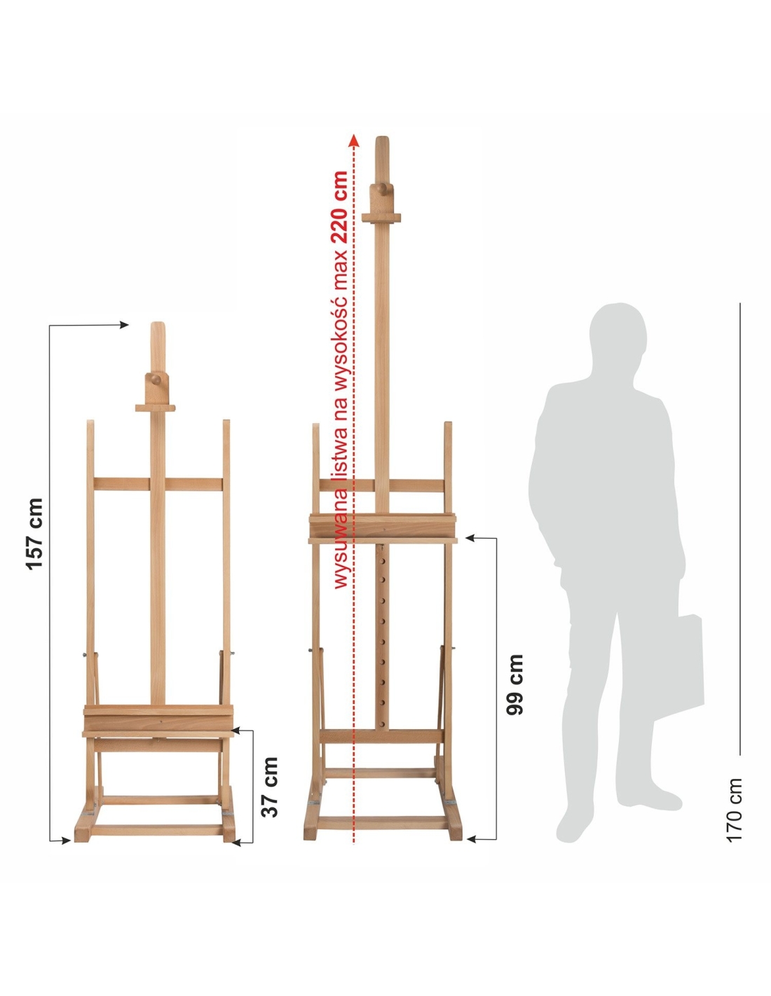 Chevalet mégastable (~ 7,5 kg !) en hêtre avec système de verrouillage métallique et réglage de l'angle d'inclinaison 157/220 cm
