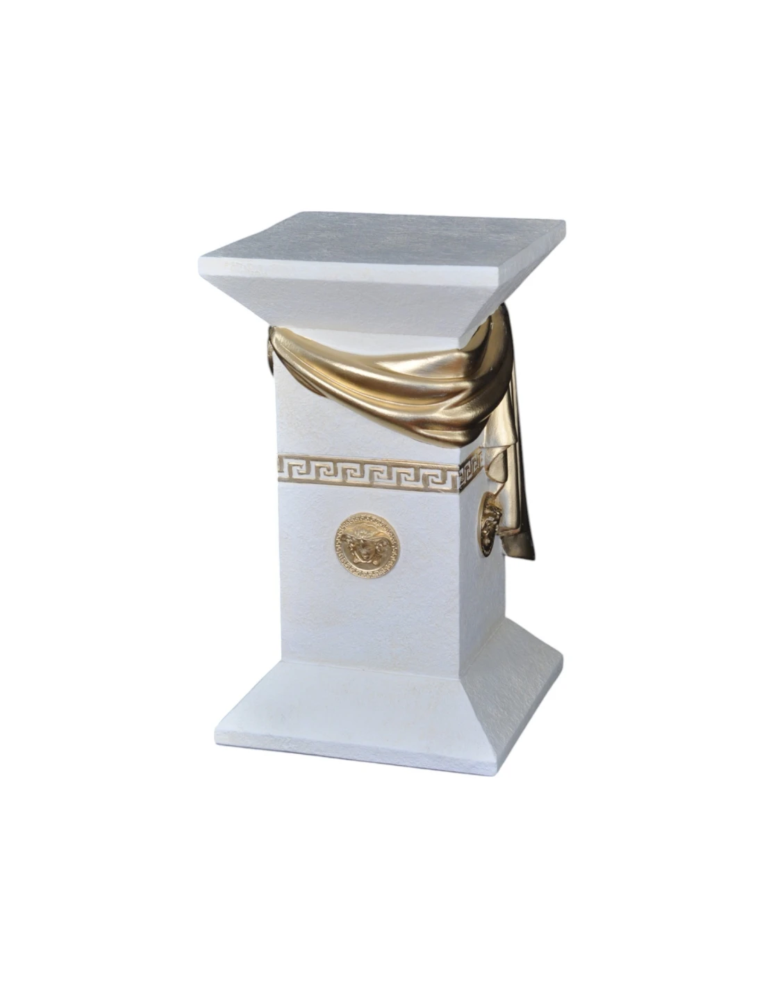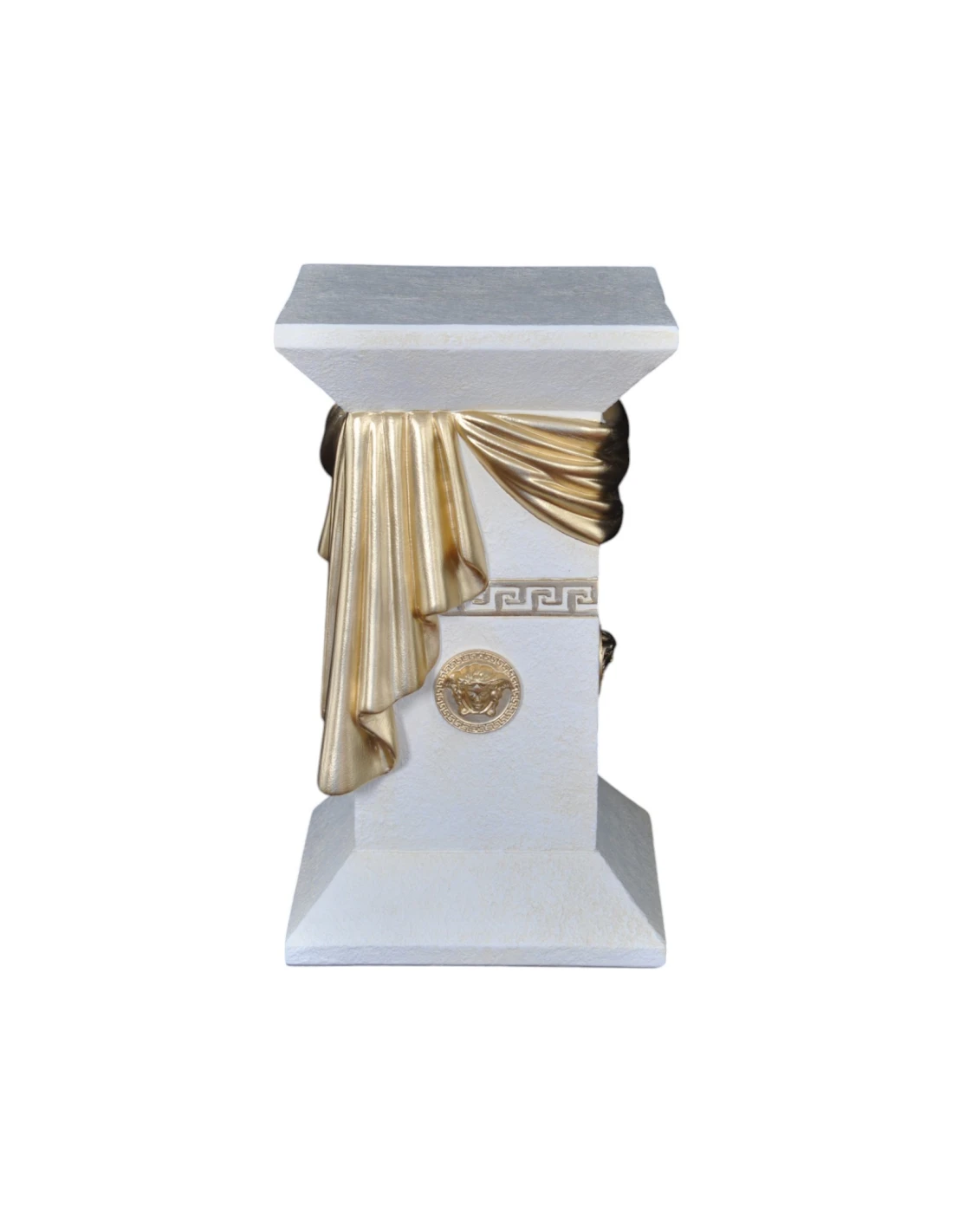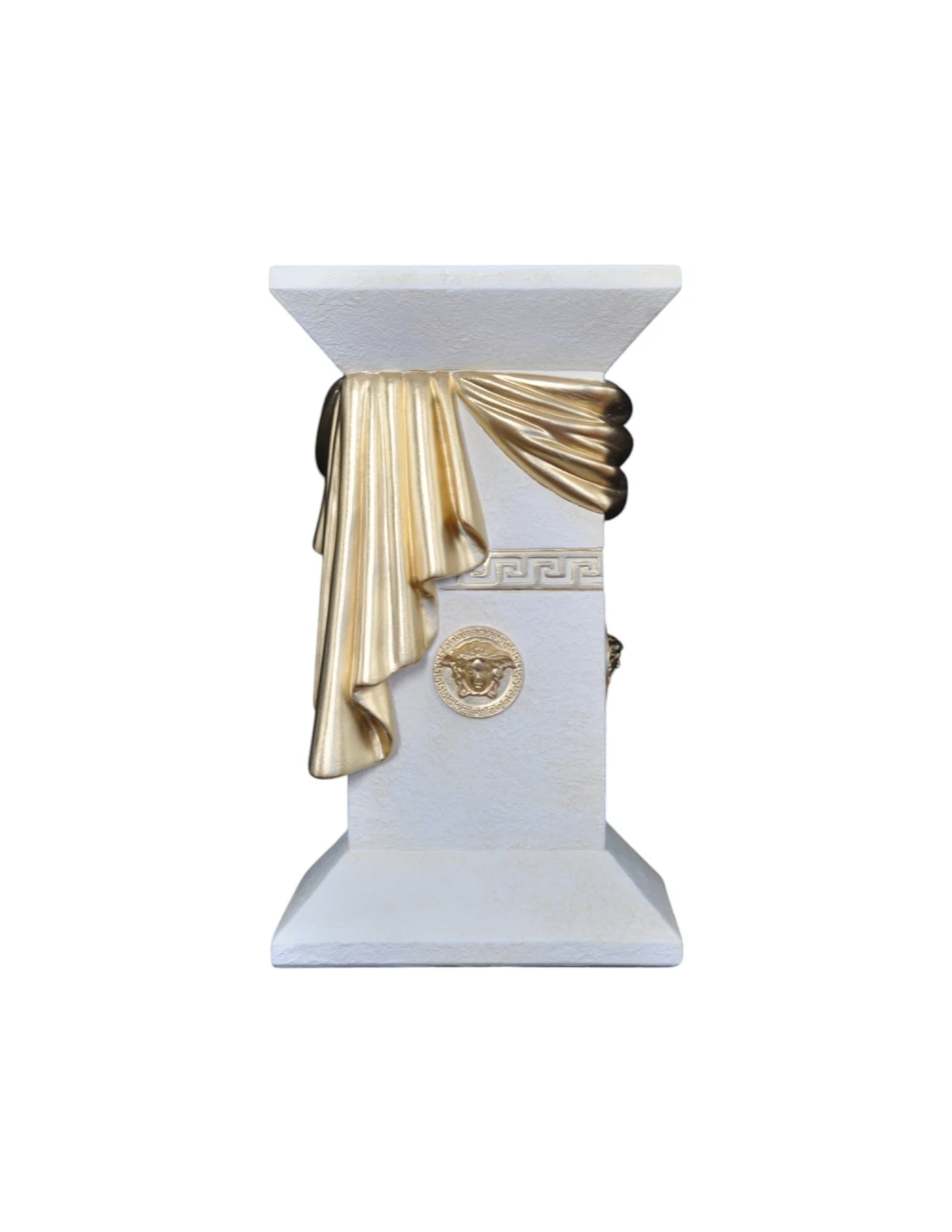 Colonne grecque blanche élégante avec draperie, reliefs décoratifs et détails dorés, H: 0,55 m