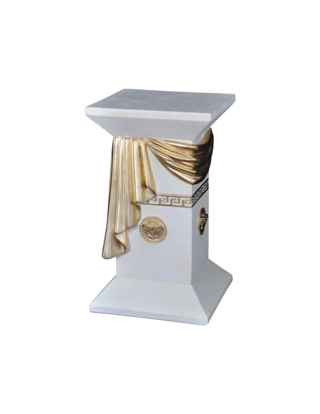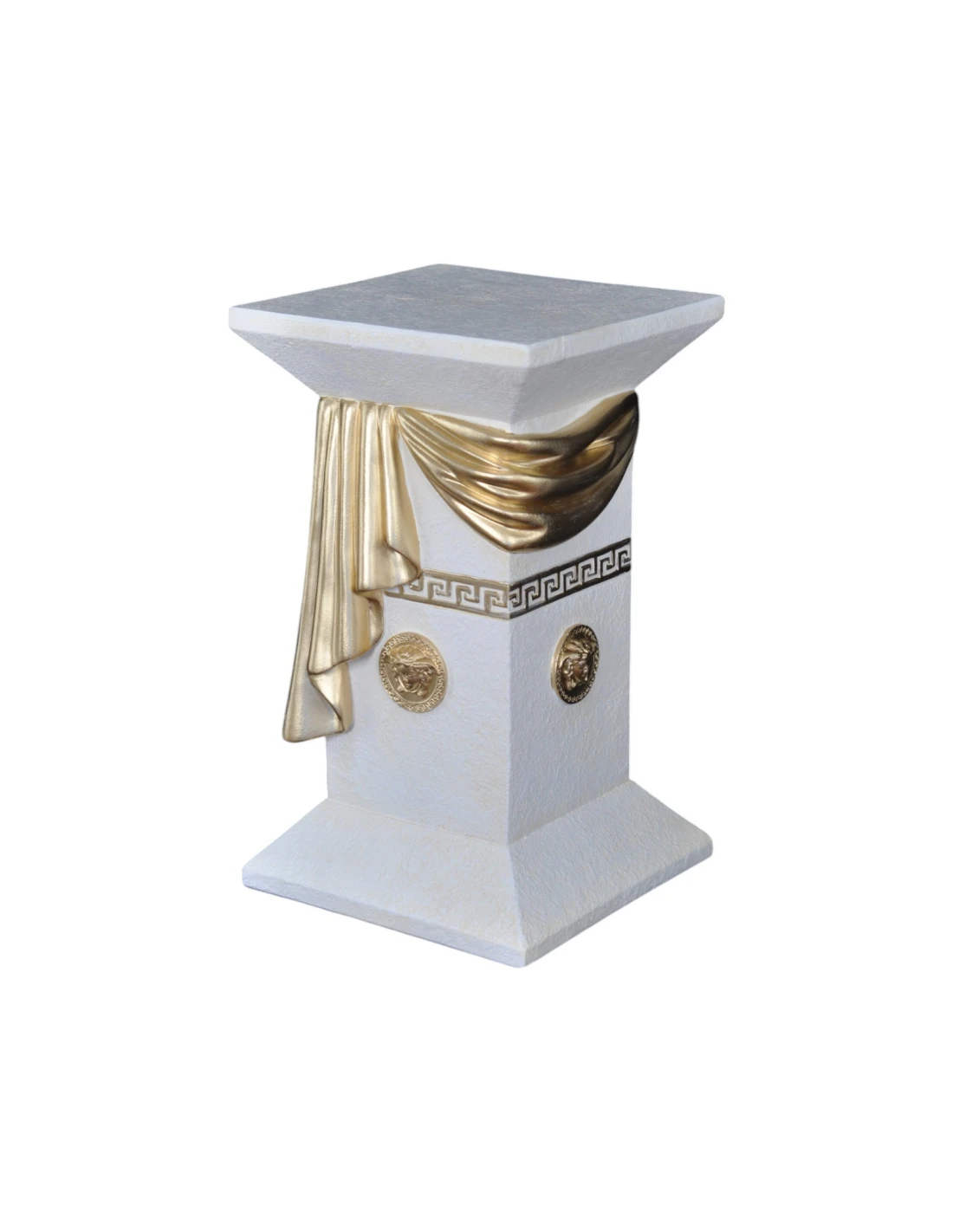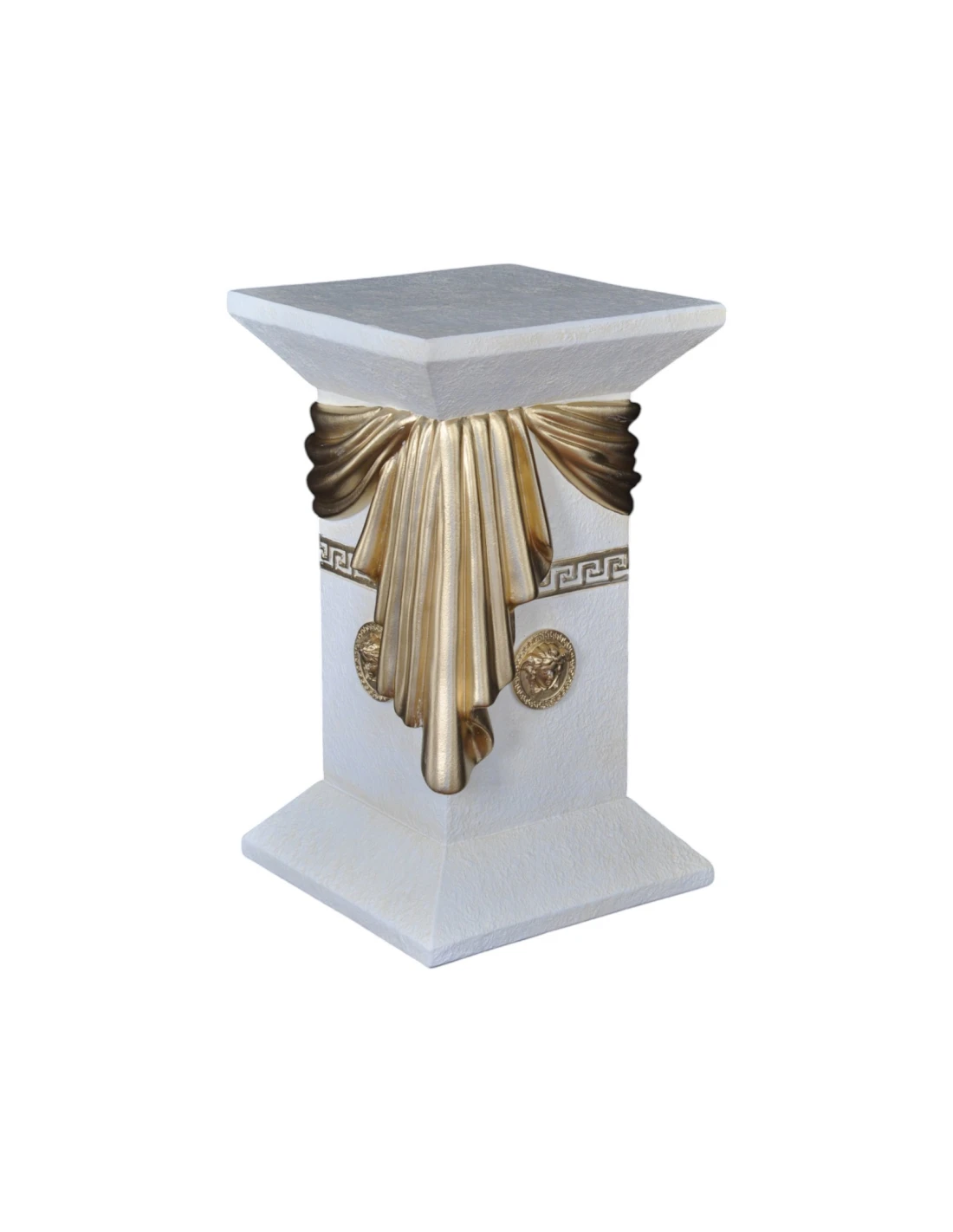 Colonne grecque blanche élégante avec draperie, reliefs décoratifs et détails dorés, H: 0,55 m