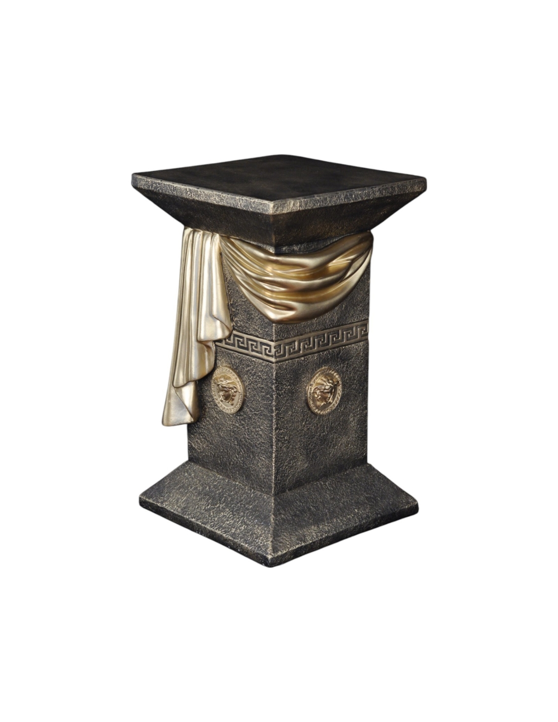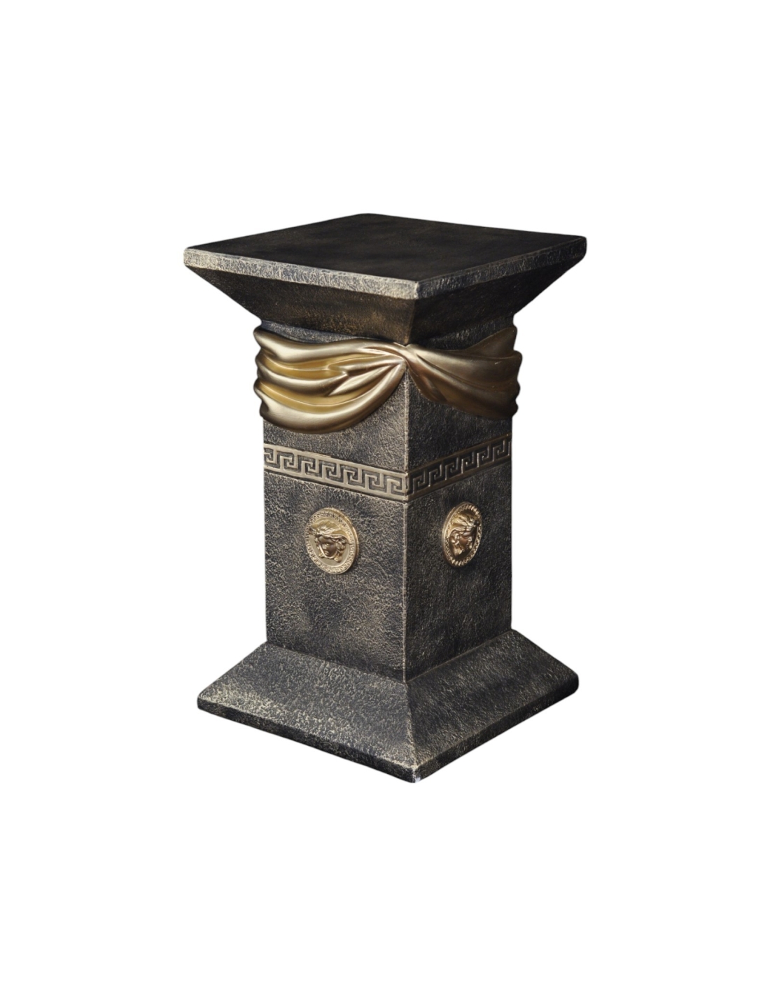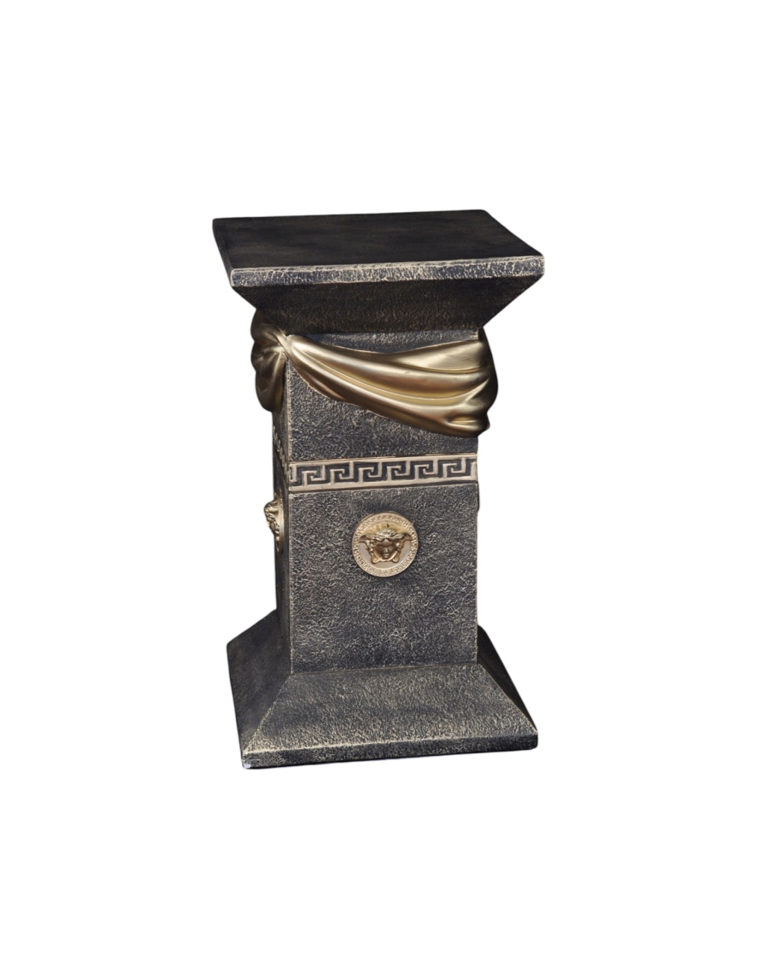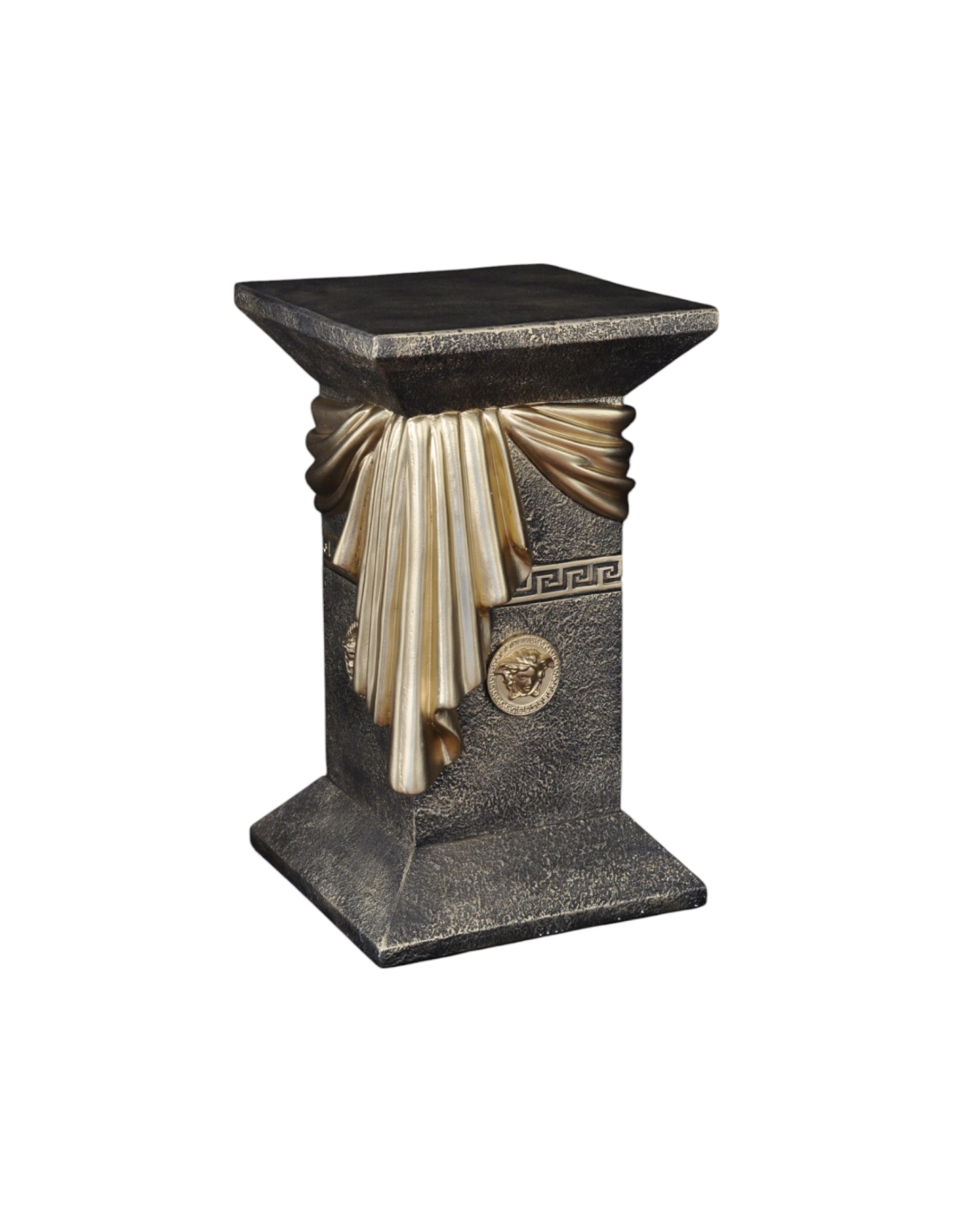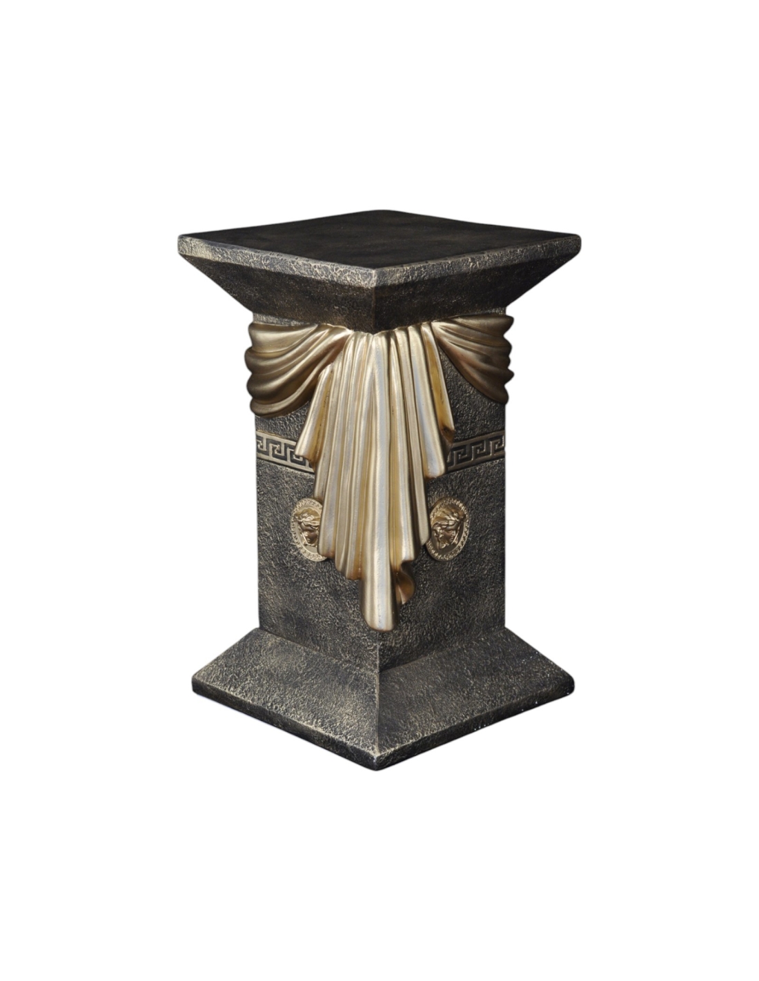 Colonne grecque noire élégante avec draperie, reliefs décoratifs et détails dorés, H: 0,55 m