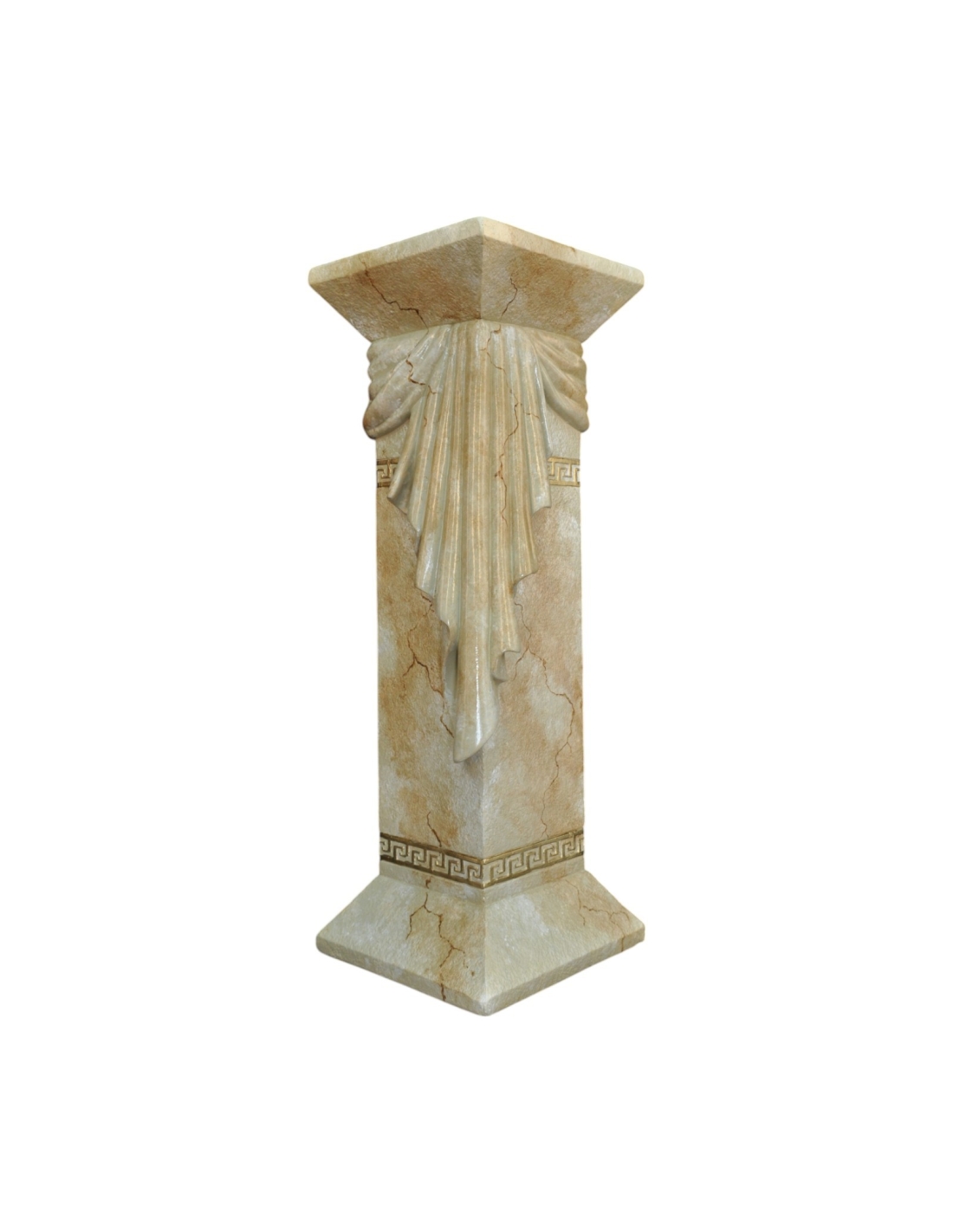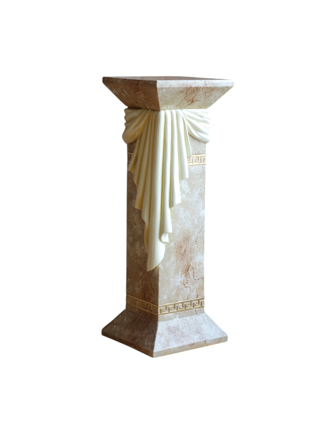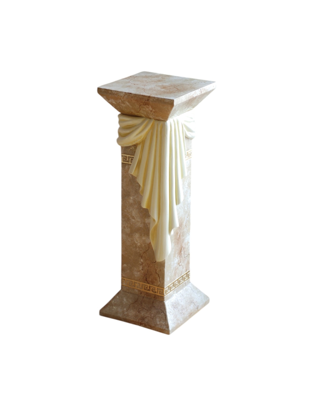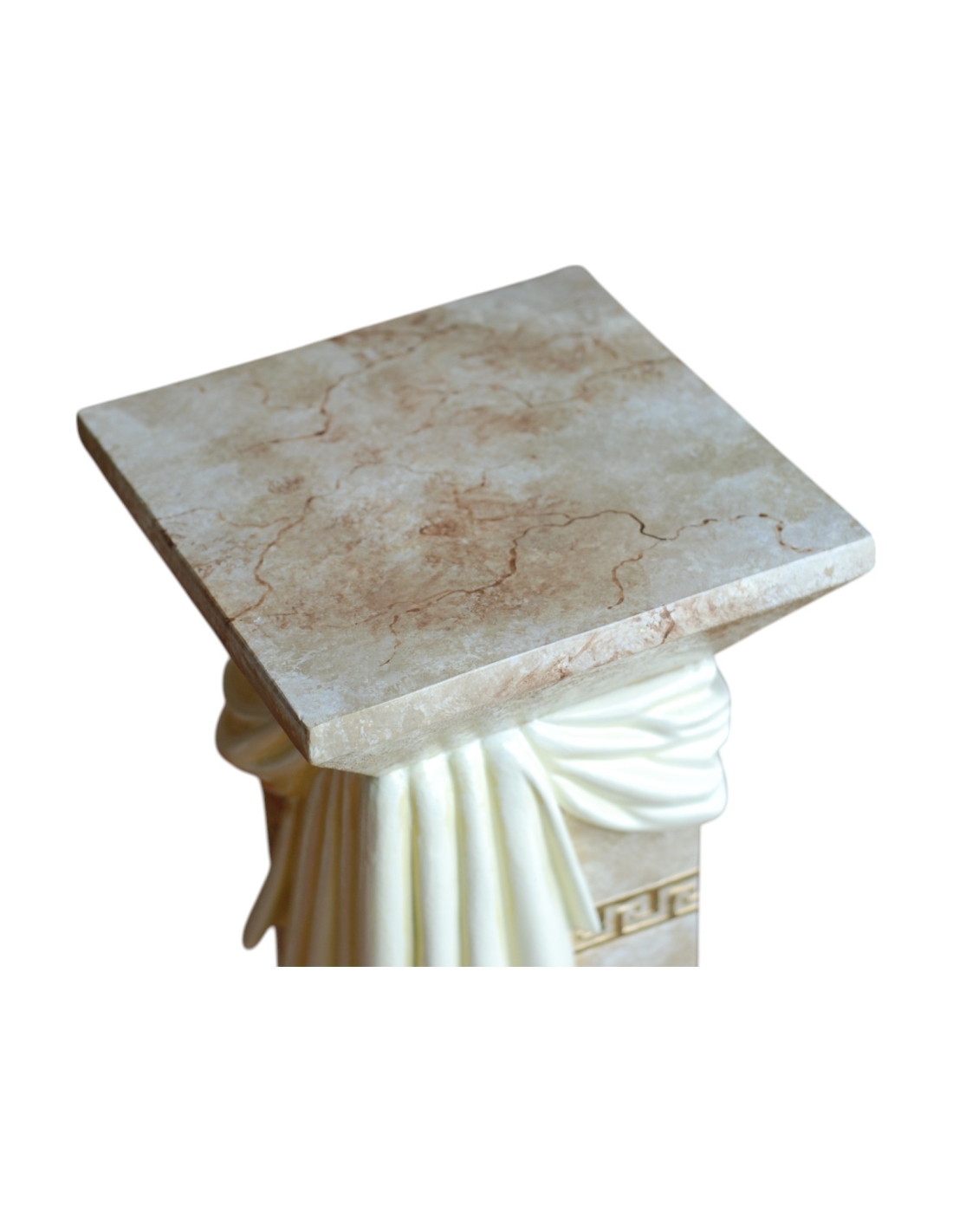 Colonne imitation marbre grec avec draperie décorative et détails dorés, H: 0,8 m