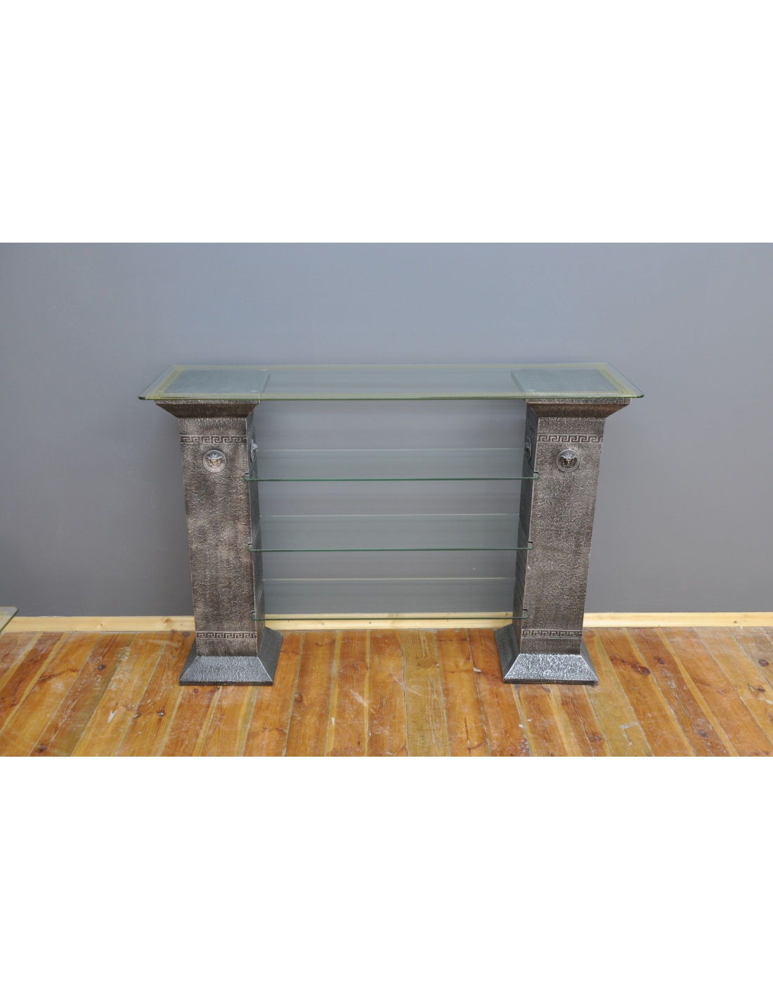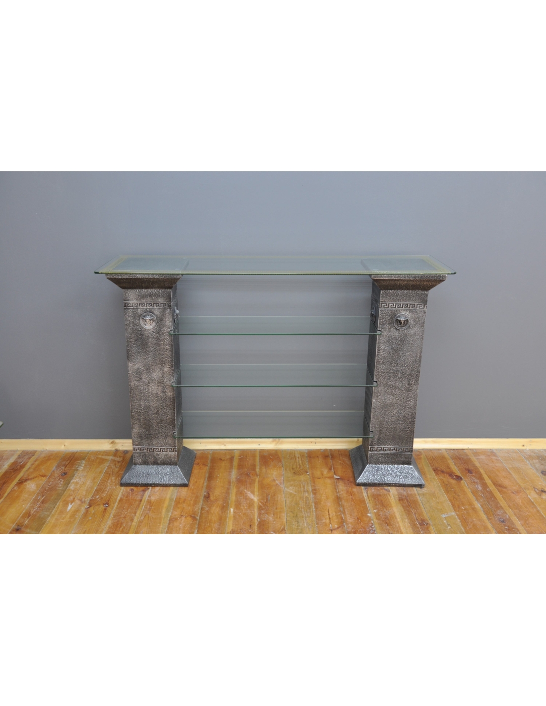 Console décorative noire de style grec, étagères en verre, H : 1,01 m