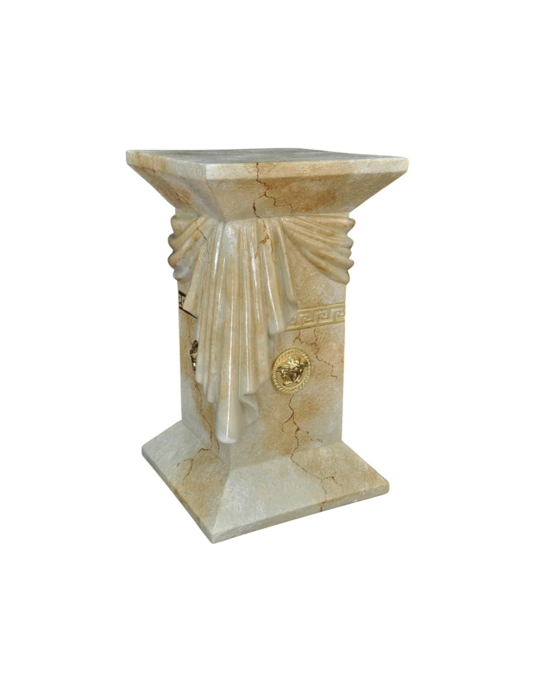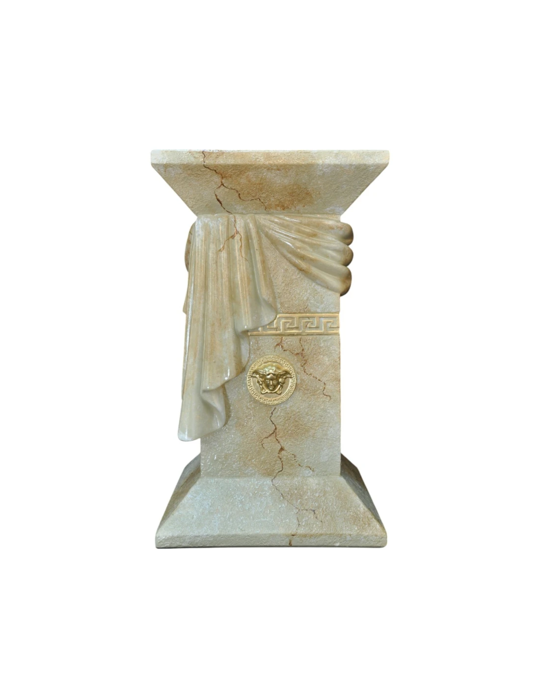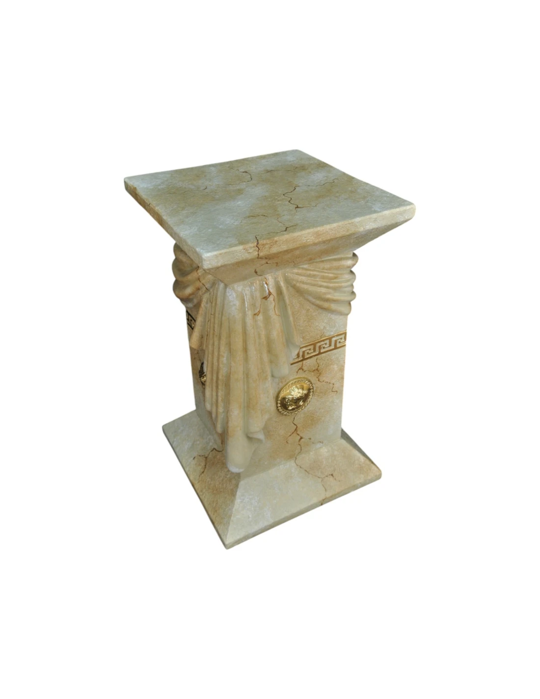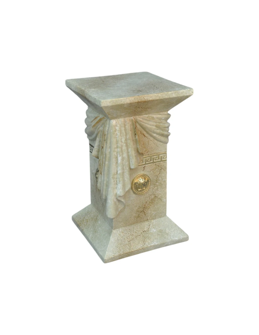 Élégante colonne grecque imitation marbre avec draperie, reliefs décoratifs et détails dorés, H: 0,55 m