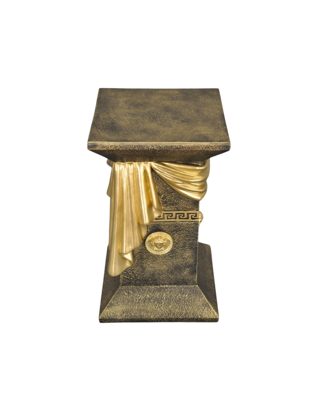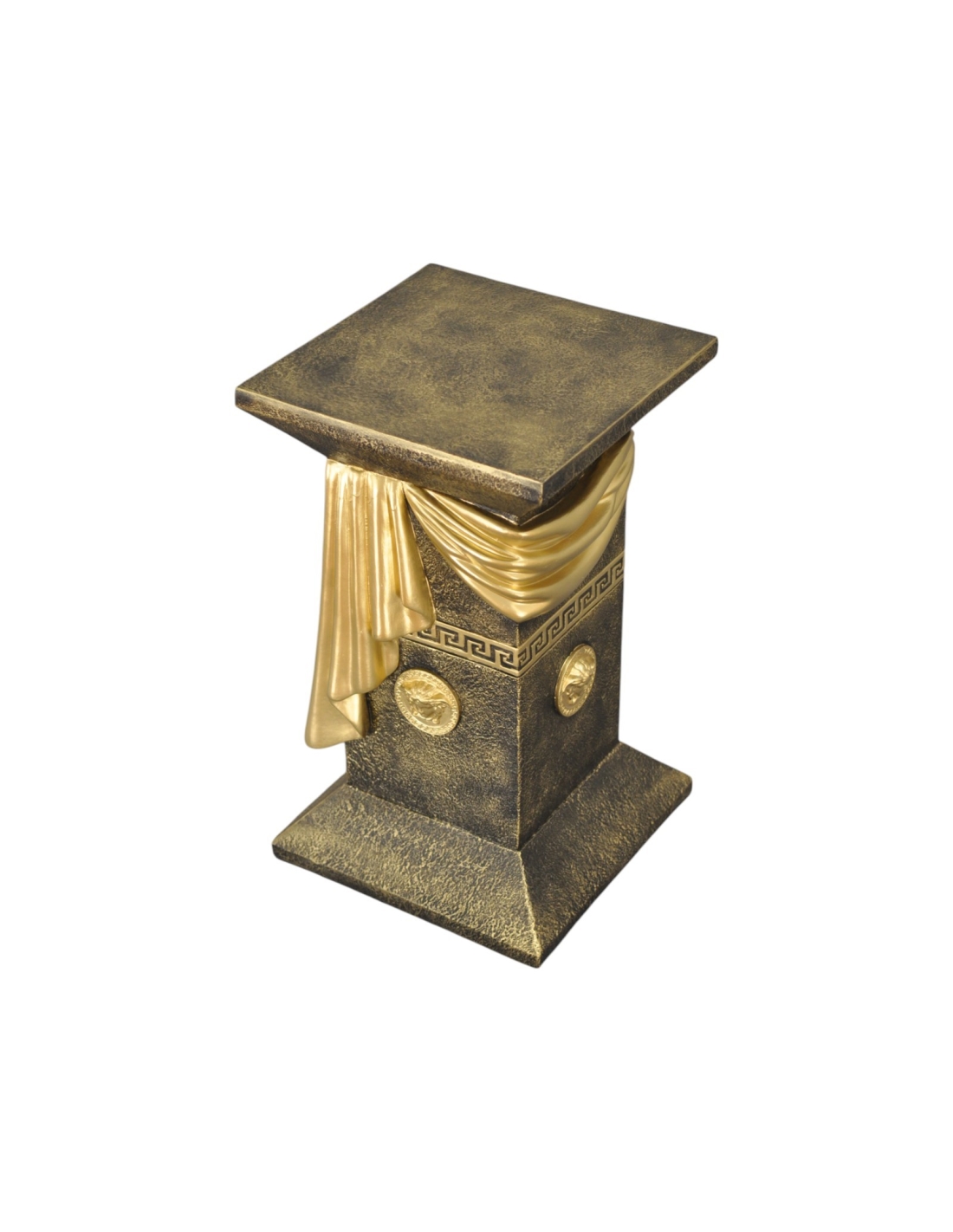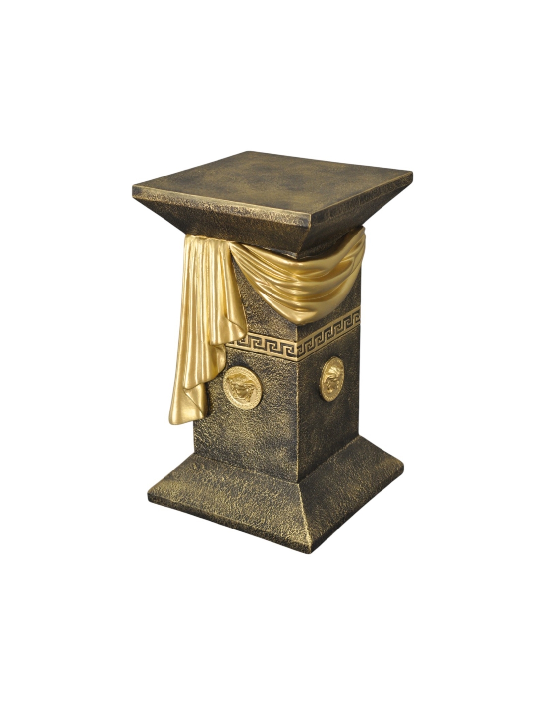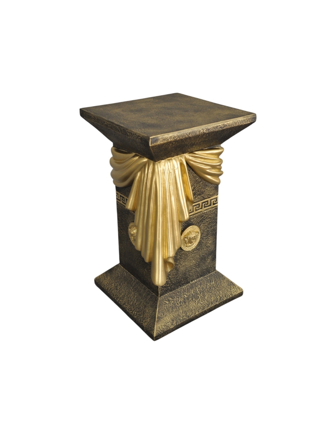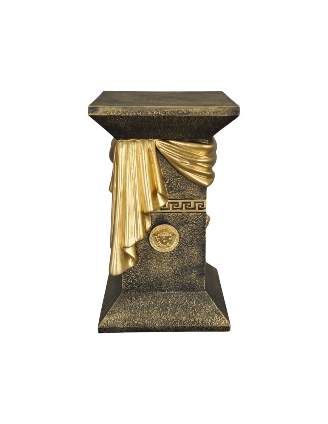 Élégante colonne grecque imitation marbre noir avec draperie, reliefs décoratifs et détails dorés, H: 0,55 m