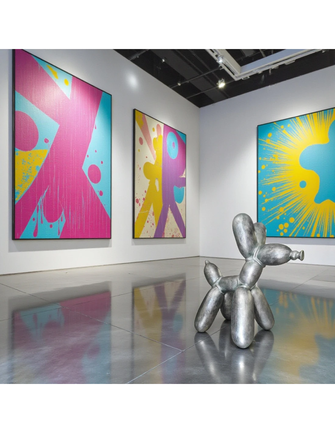 Inspiration : sculptures de Jeff Koons, Pop-Art de galerie, décorations métalliques de style loft.