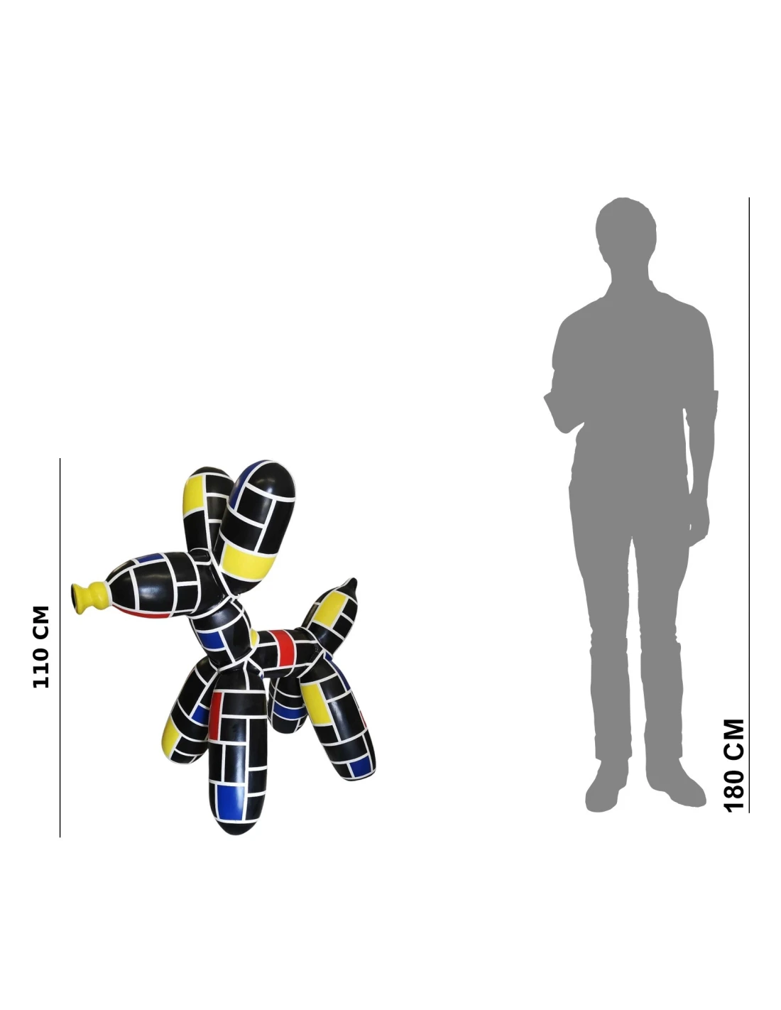 Figurine décorative Chien Pop Art Balloon Dog De Stijl Mondrian noir multicolore résine brillante