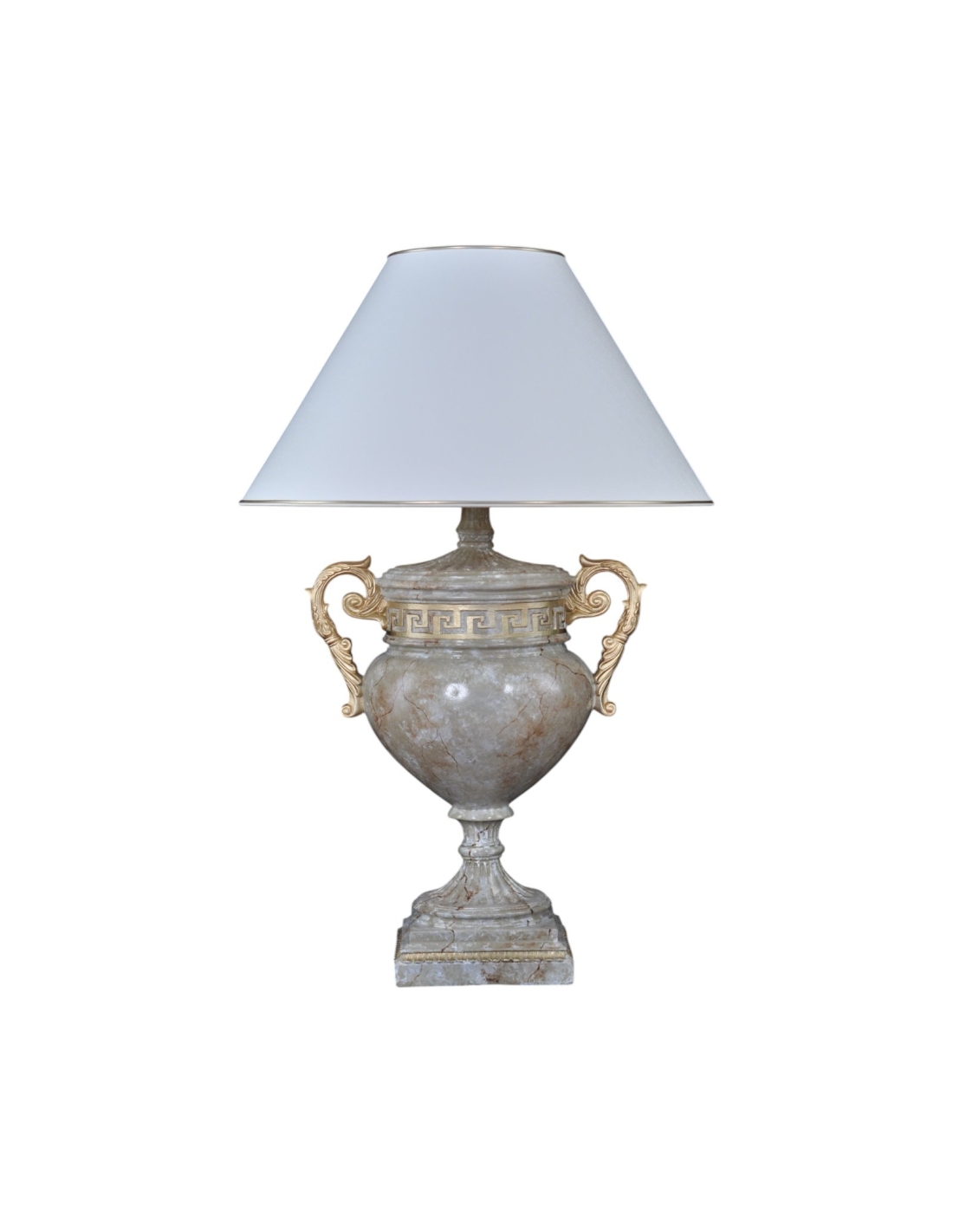 Cette superbe lampe en marbre gris, fabriquée en résine de haute qualité, allie à la perfection les styles antique et classique. Son corps en forme d'amphore, orné de délicats ornements dorés, évoque une élégance intemporelle. Pièce décorative unique, elle apporte une touche de sophistication à tout espace, ce qui en fait un choix idéal pour un intérieur classique ou d'inspiration grecque. Avec son design harmonieux et ses détails raffinés, cette lampe deviendra assurément un élément central de votre intérieur.