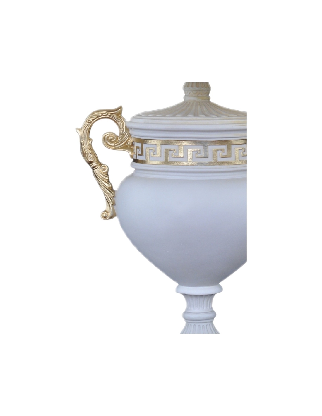 Lampe blanche en forme d'amphore avec ornements dorés, design antique, H: 0,8 m