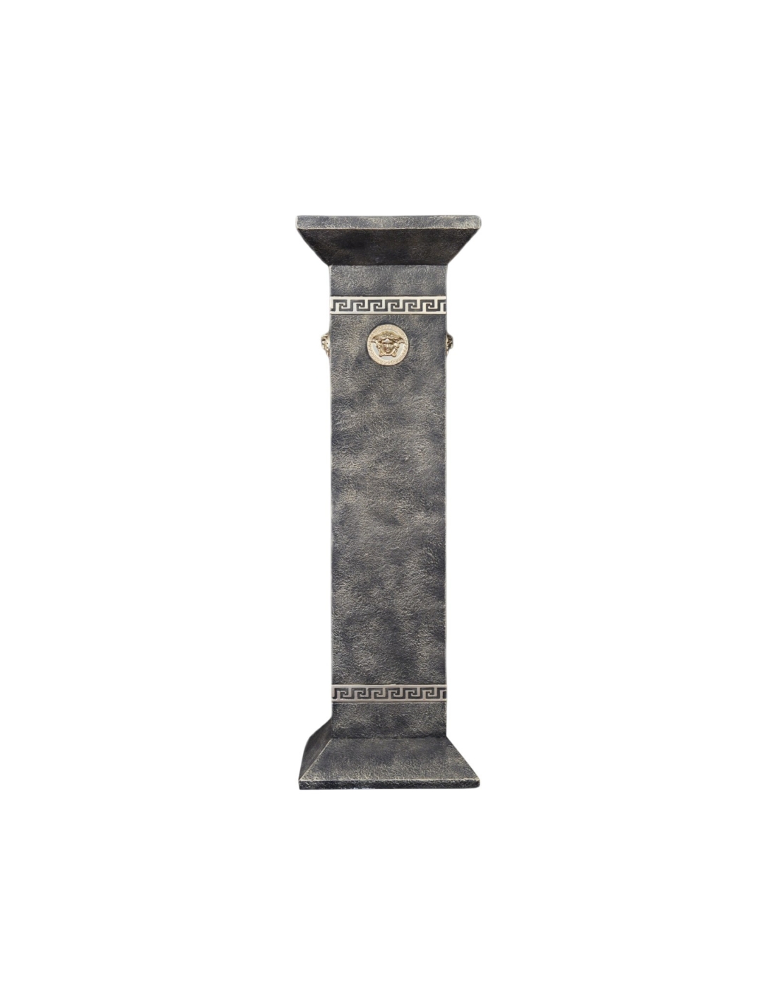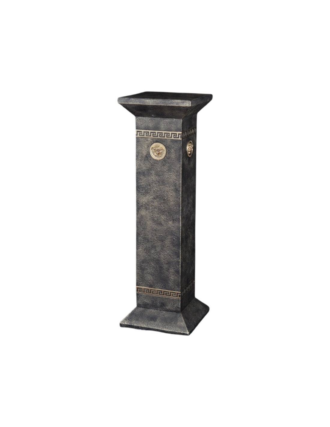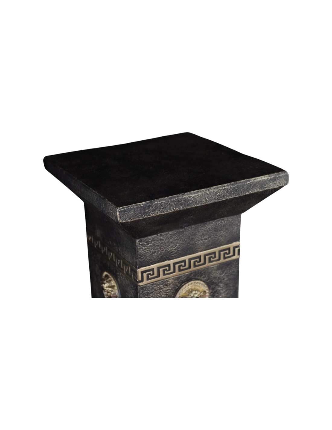 Luxueuse colonne grecque noire avec reliques et ornements dorés représentant la Méduse, H: 1 m