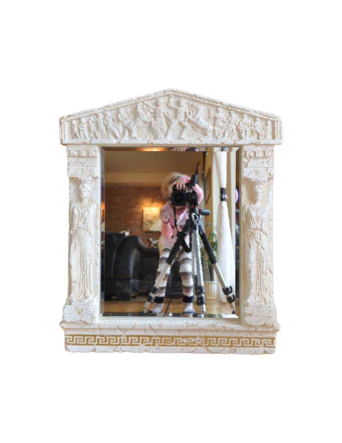 Miroir beige antique avec façade et colonnes très ornementées, H: 0,7 m