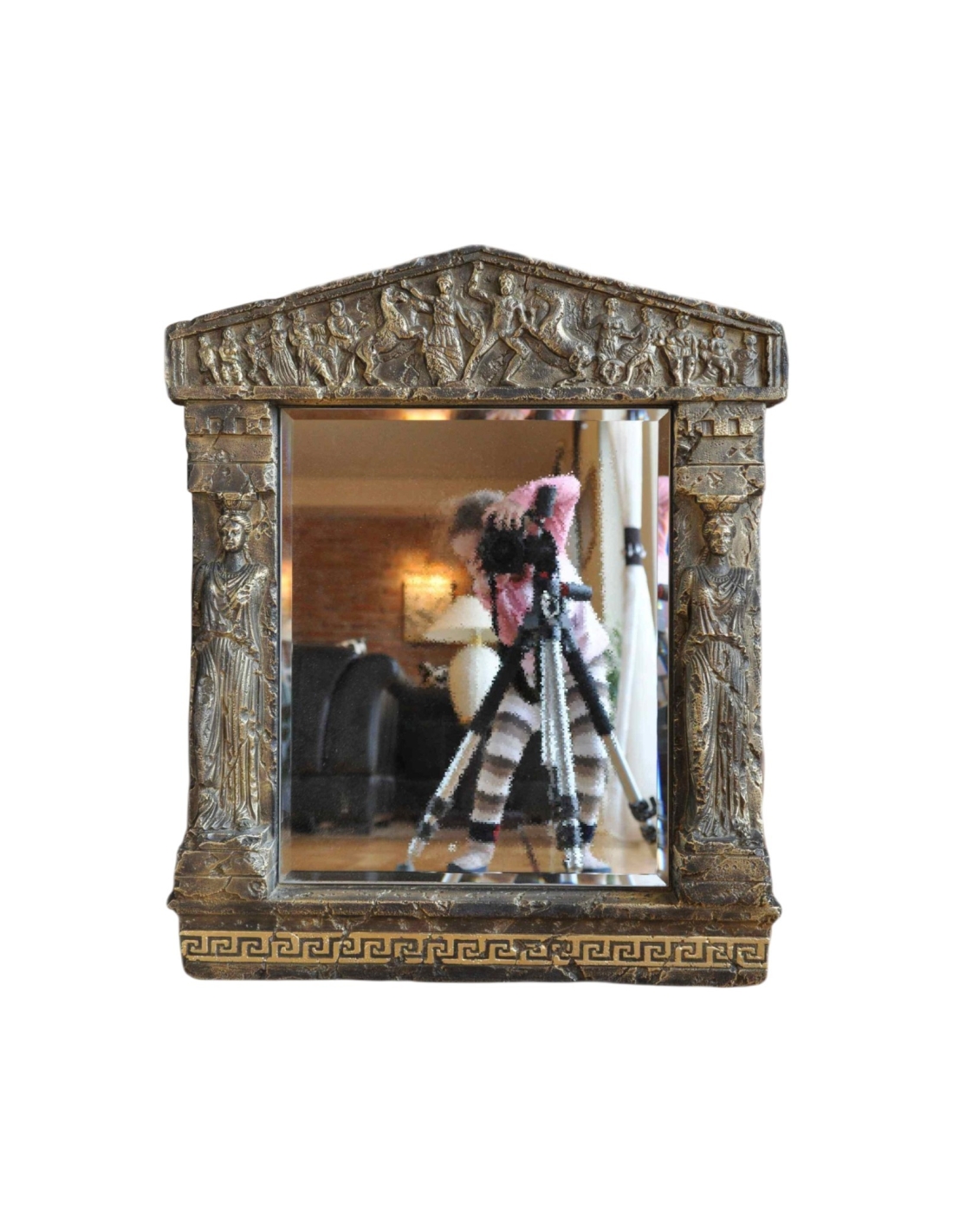 Ce miroir imitation bronze antique, fabriqué en résine de haute qualité, témoigne de l'élégance intemporelle du design grec et classique. Son cadre exceptionnellement orné présente des sculptures très détaillées de figures et de colonnes évoquant la grandeur des temples et monuments antiques. Sa finition brune sophistiquée lui confère l'aspect d'un précieux objet historique, tandis que l'excellente reproduction des détails assure une esthétique de haute qualité. Avec ses dimensions imposantes et son aspect luxueux, ce miroir n'est pas seulement une surface réfléchissante, mais une œuvre d'art captivante, parfaite pour créer un point de mire spectaculaire et intemporel dans votre intérieur.