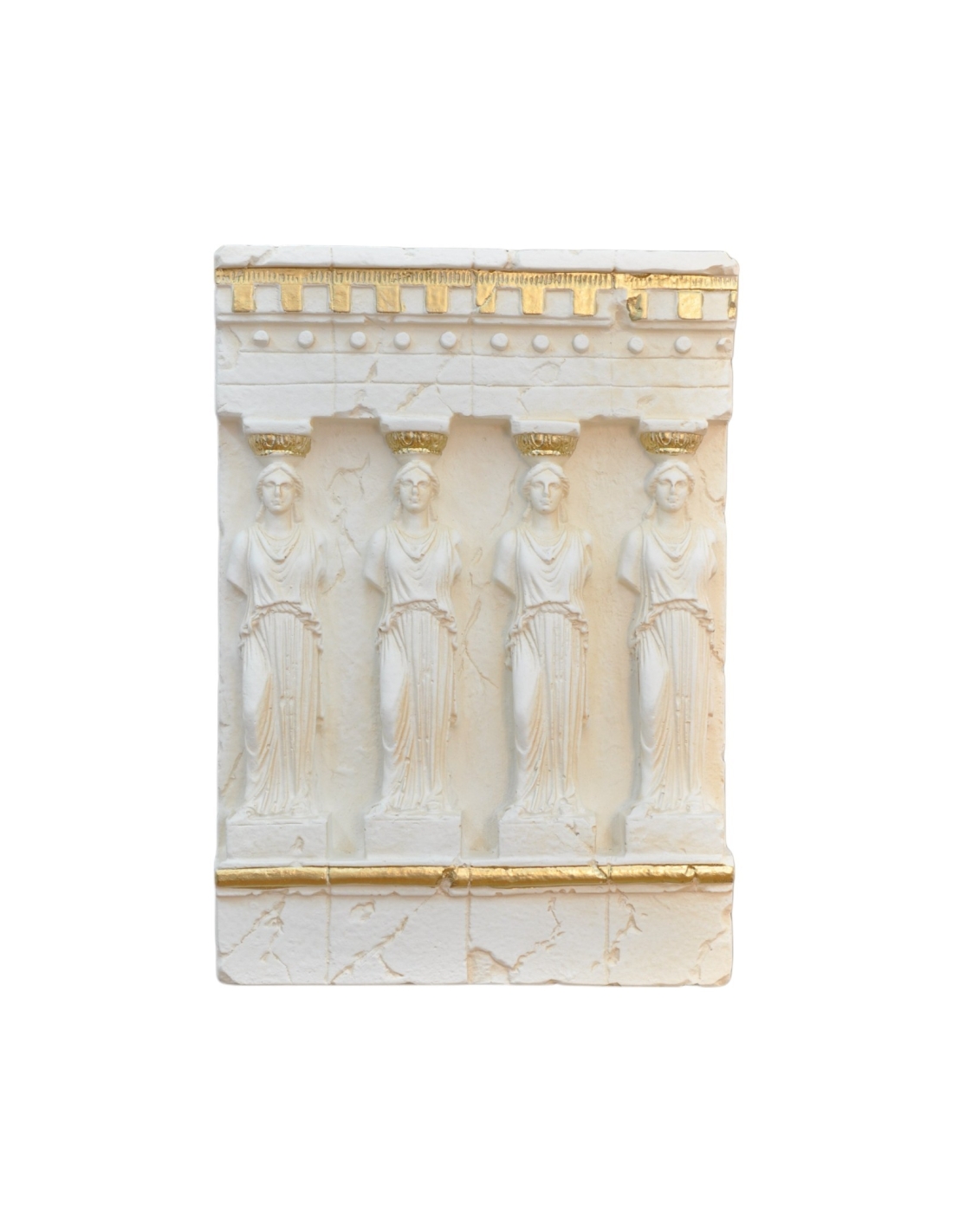 Relief représentant un temple de style antique, blanc avec ornements dorés, H: 0,3 m