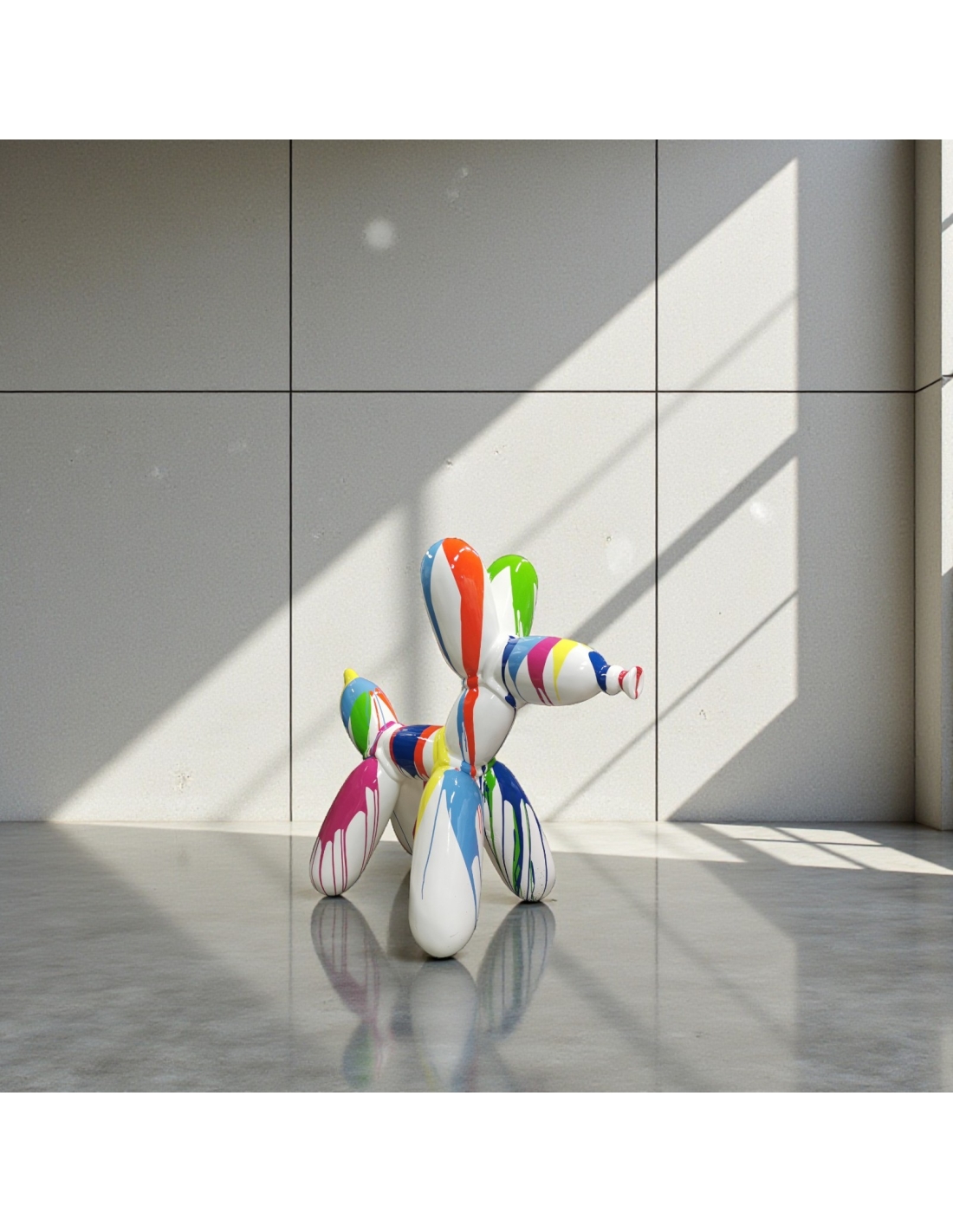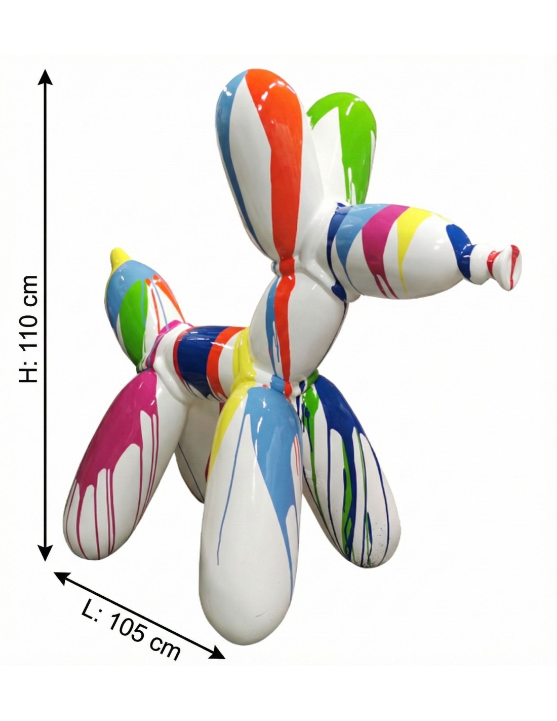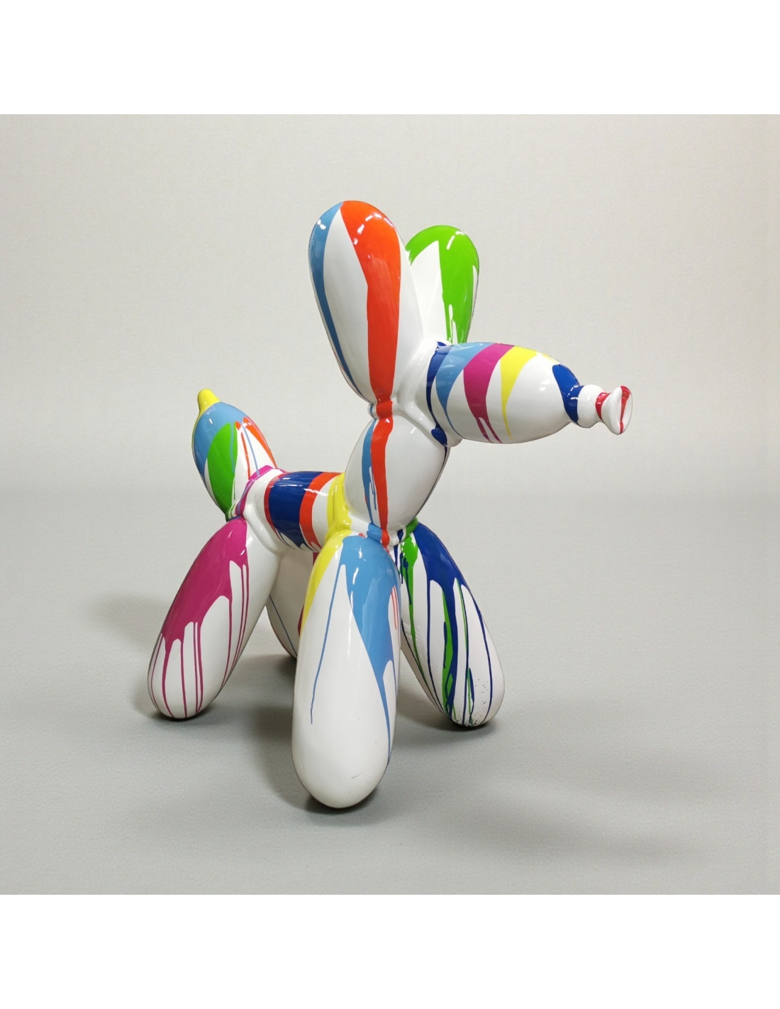 Sculpture Balloon Dog XL Pop-Art Drip blanc multicolore haute brillance résine H: 110cm