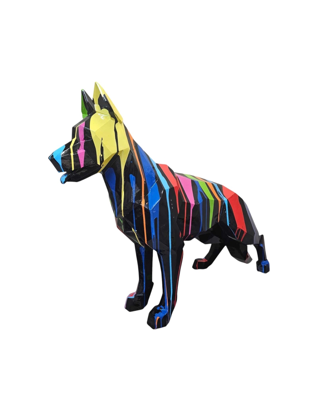 Statue Bouledogue Anglais Pop-Art Animal Flower Power Style noir multicolore résine...