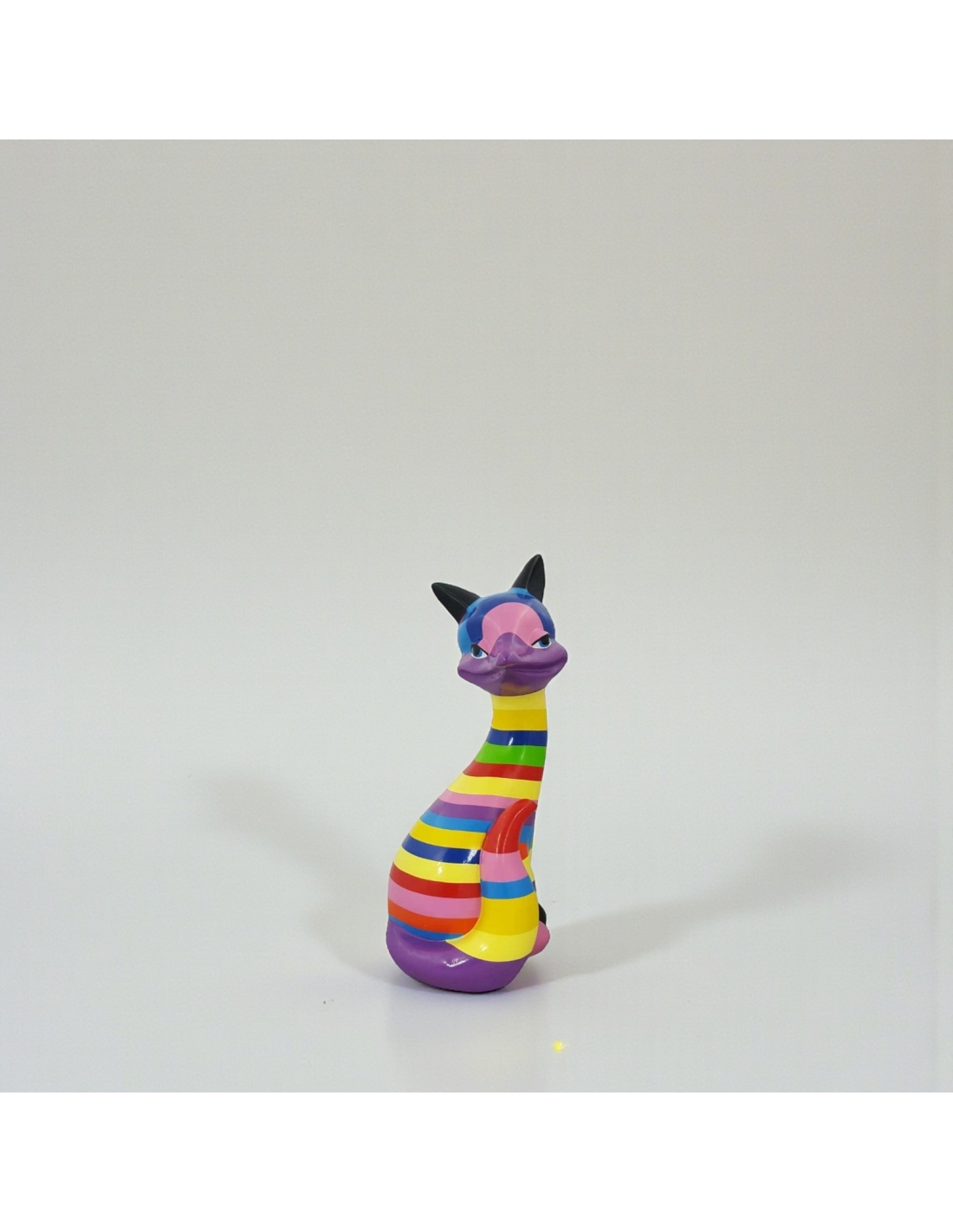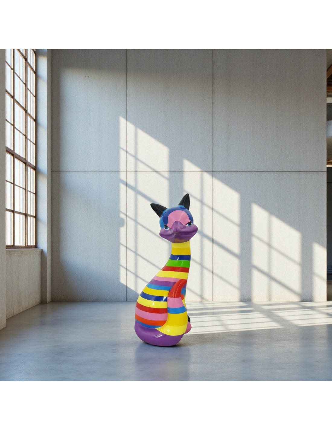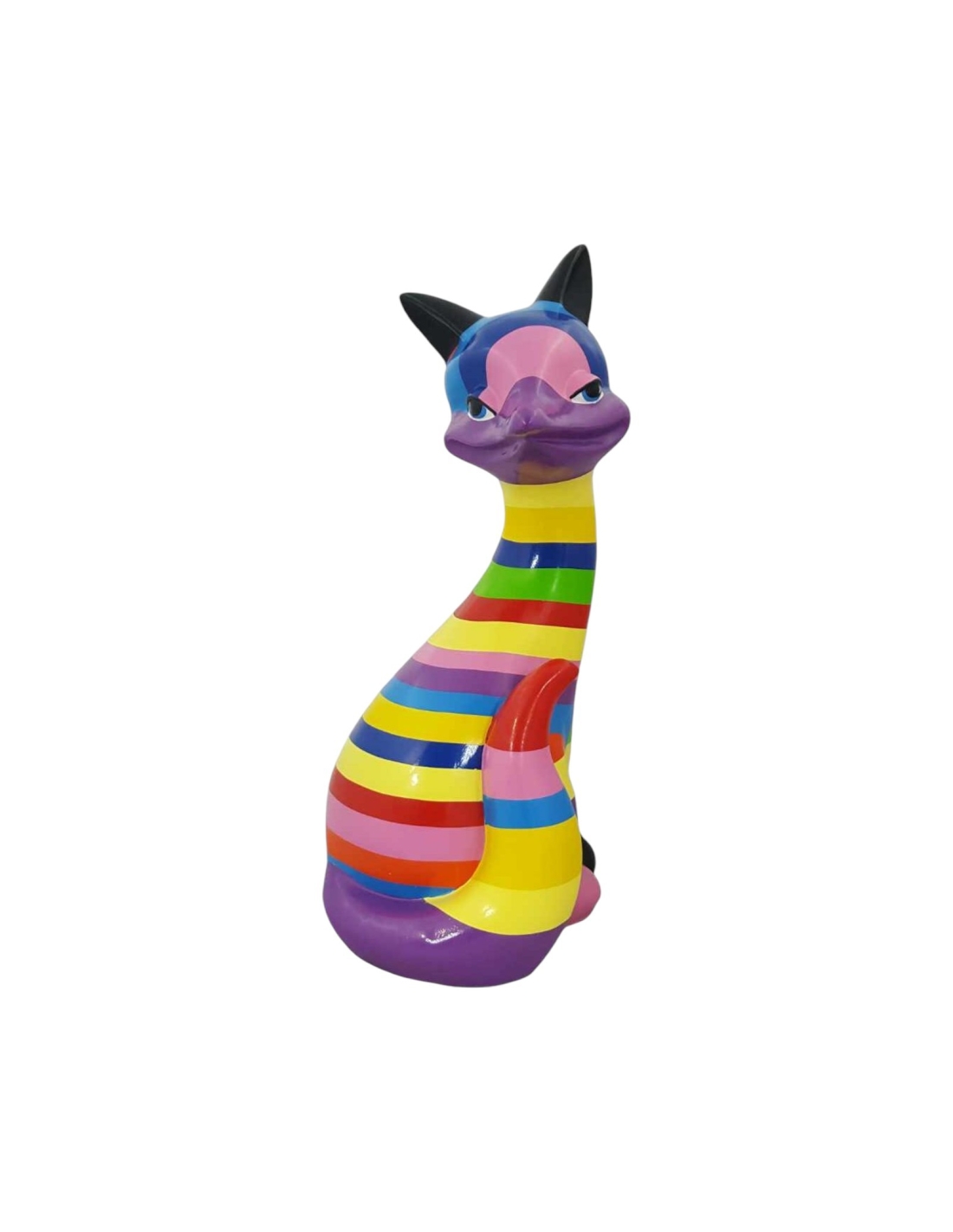Sculpture Renard Pop-Art Rainbow Stripes multicolore haute brillance vernis résine H: 60cm