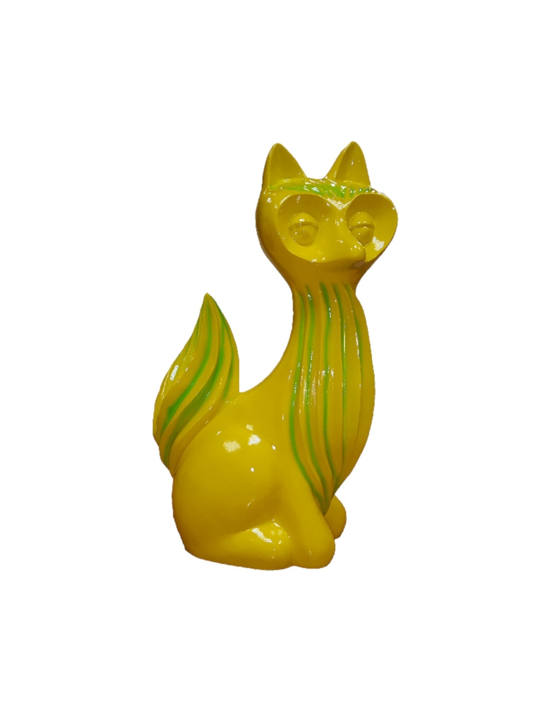 Sculpture Renard Pop-Art Stripe Blue Flame bleu-rose haute brillance résine