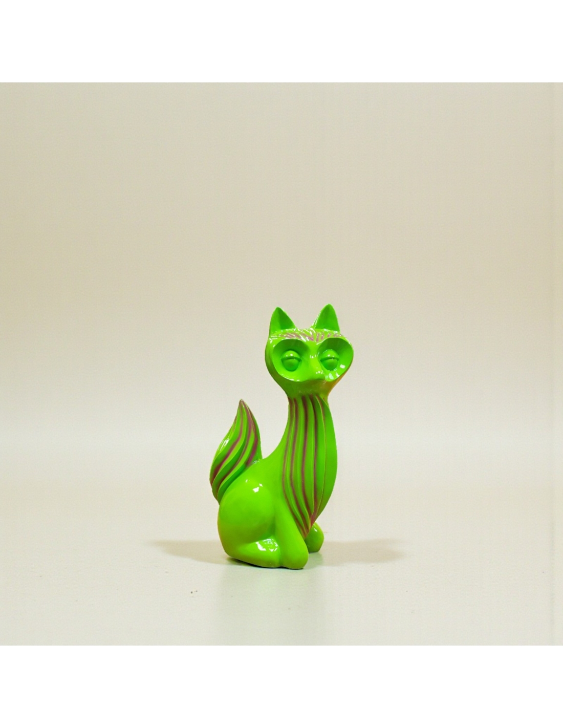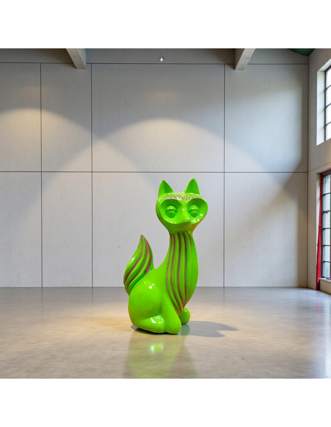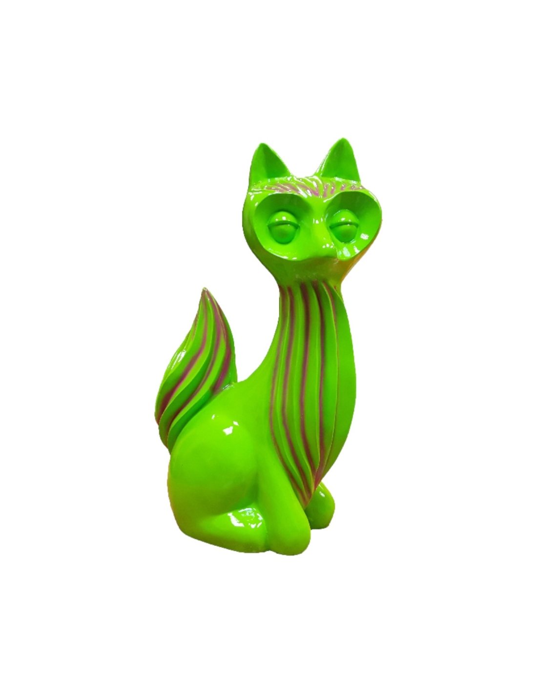 Sculpture Renard Pop-Art Stripe Lime Twist vert-rose haute brillance résine H: 60cm