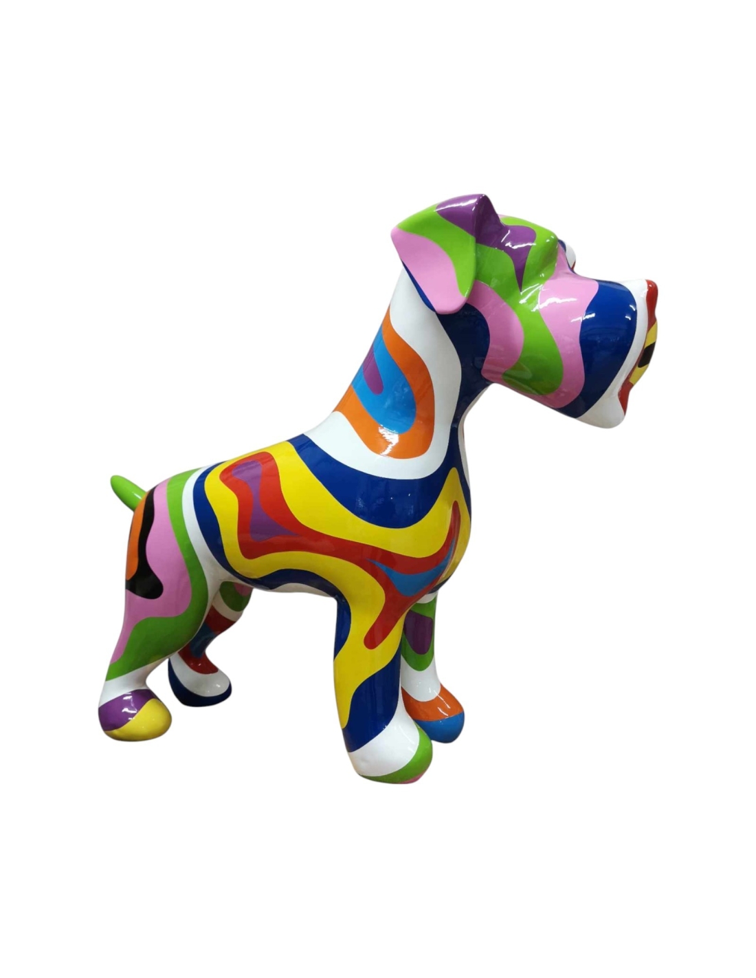 Sculpture Bulldog Pop-Art Op-Art Lime Stripe vert-gris-blanc-noir résine haute brillance