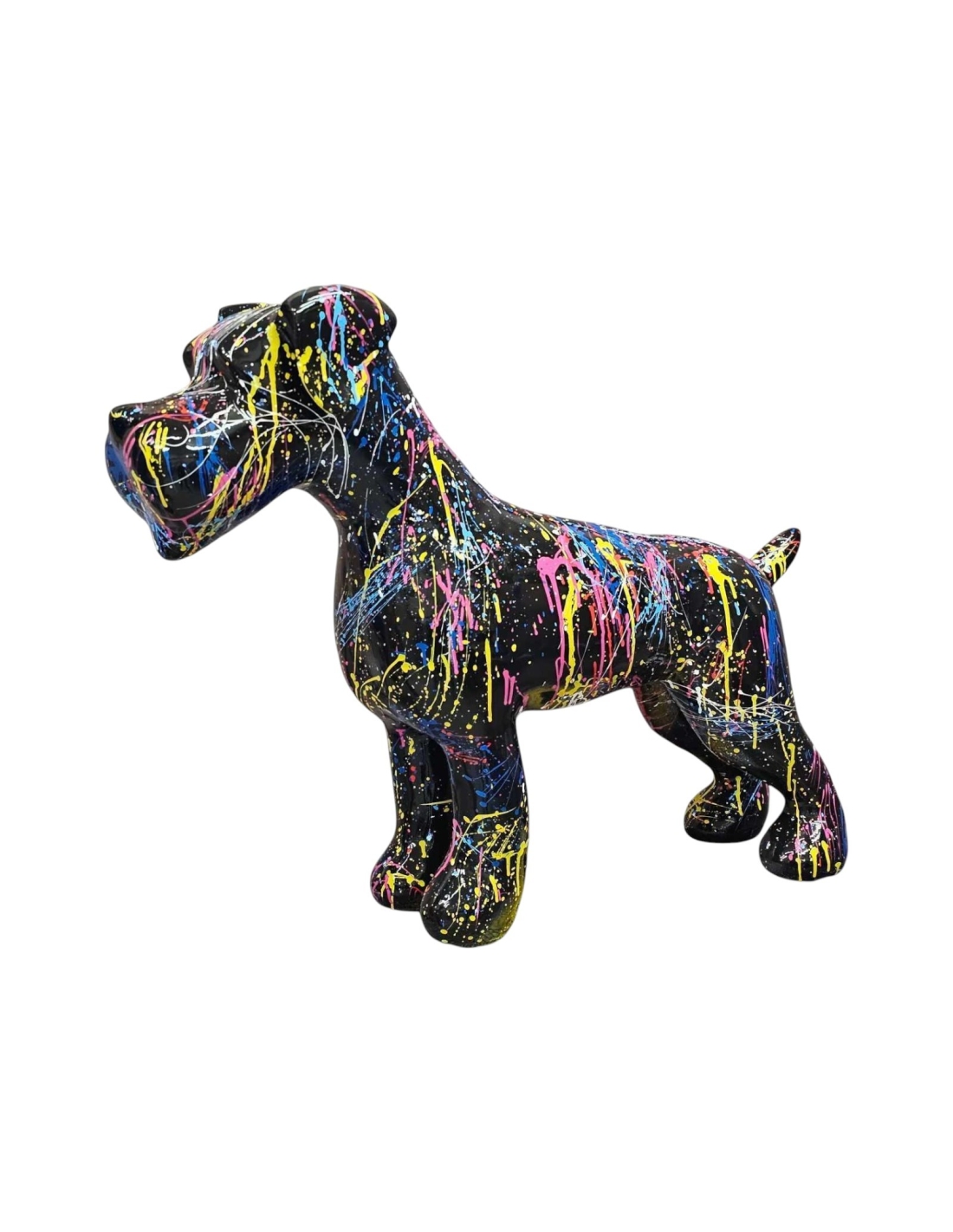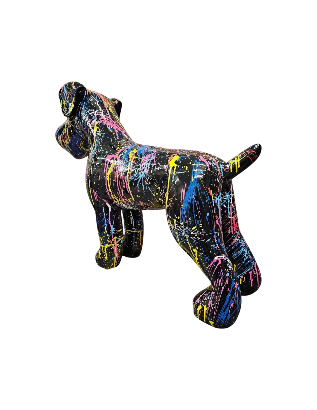 Sculpture Terrier Pop-Art Drip Art Neon Splash Noir Multicolore Haute Brillance Résine