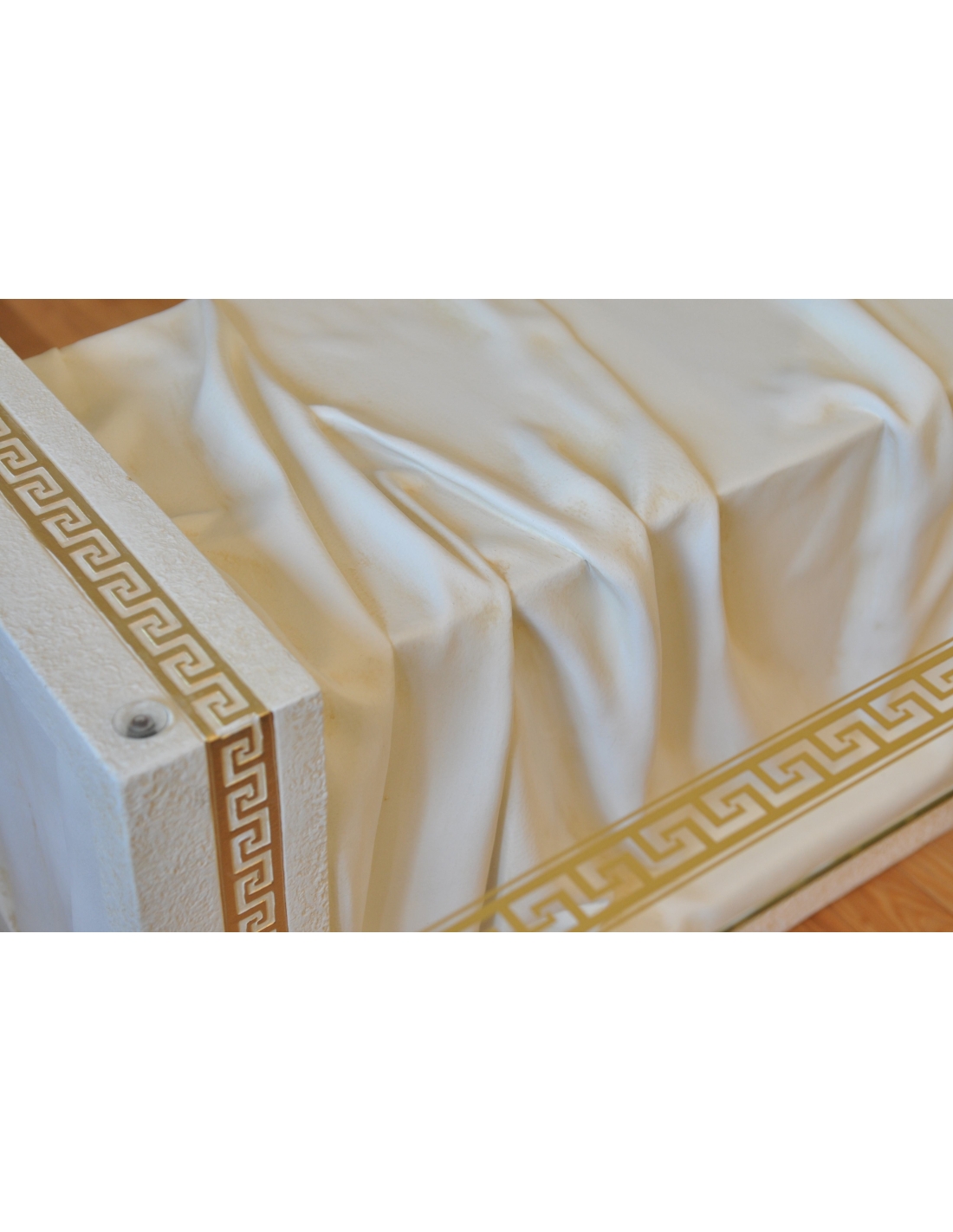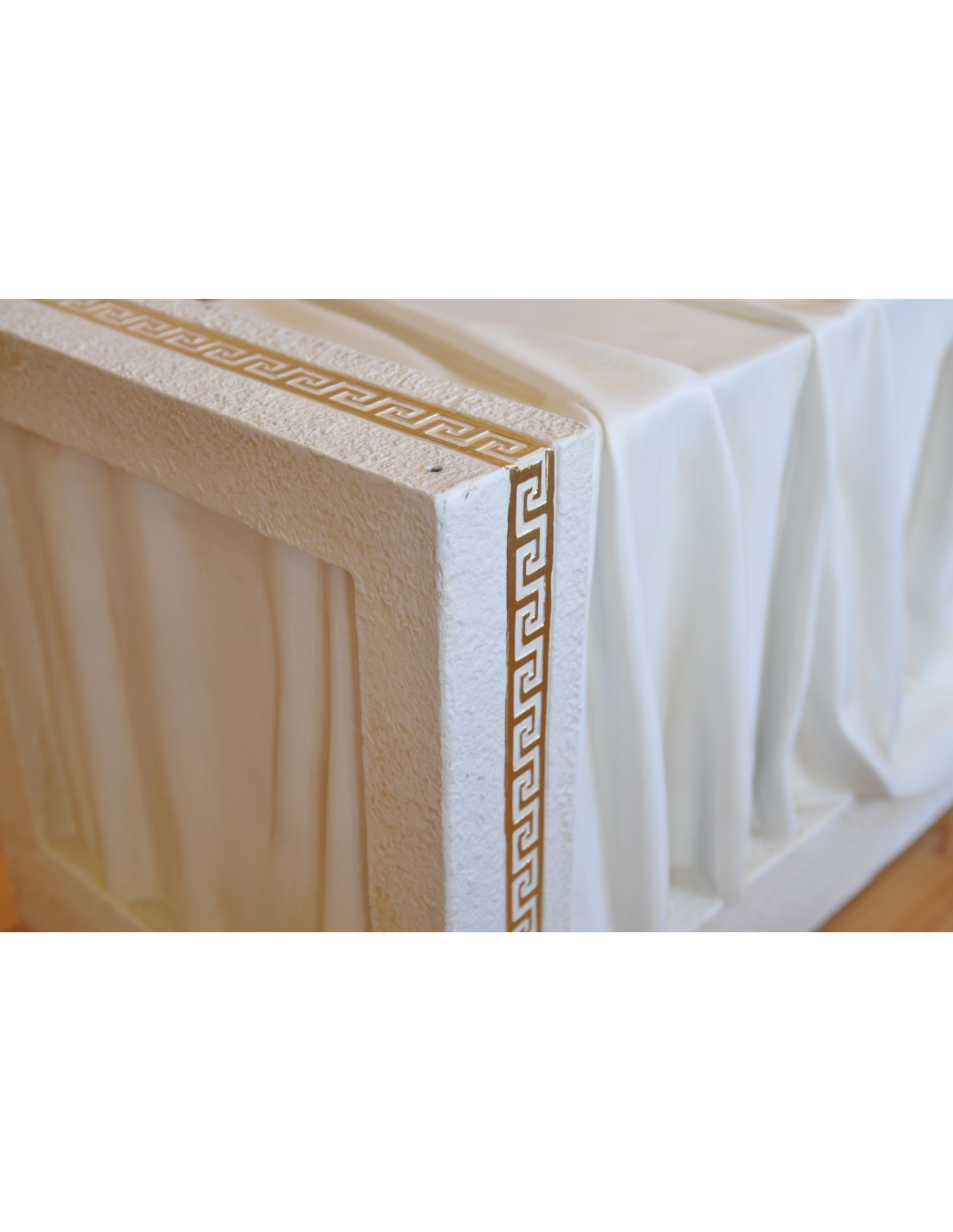 Colonne imitation marbre grec avec draperie décorative, détails noirs et dorés, H: 0,8 m