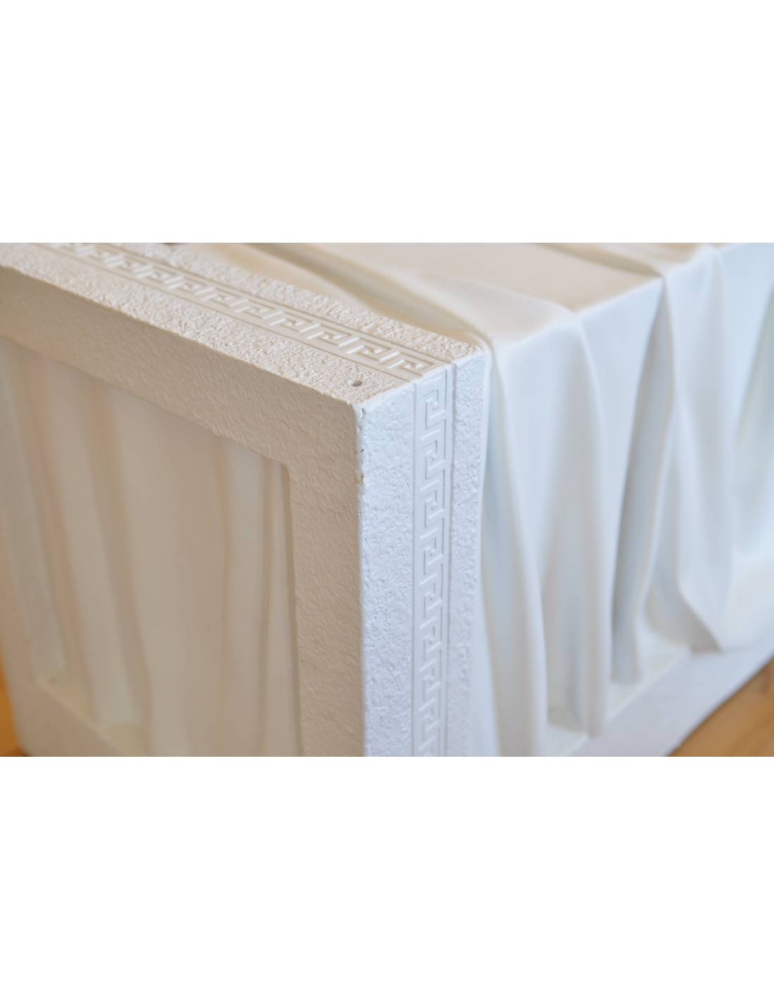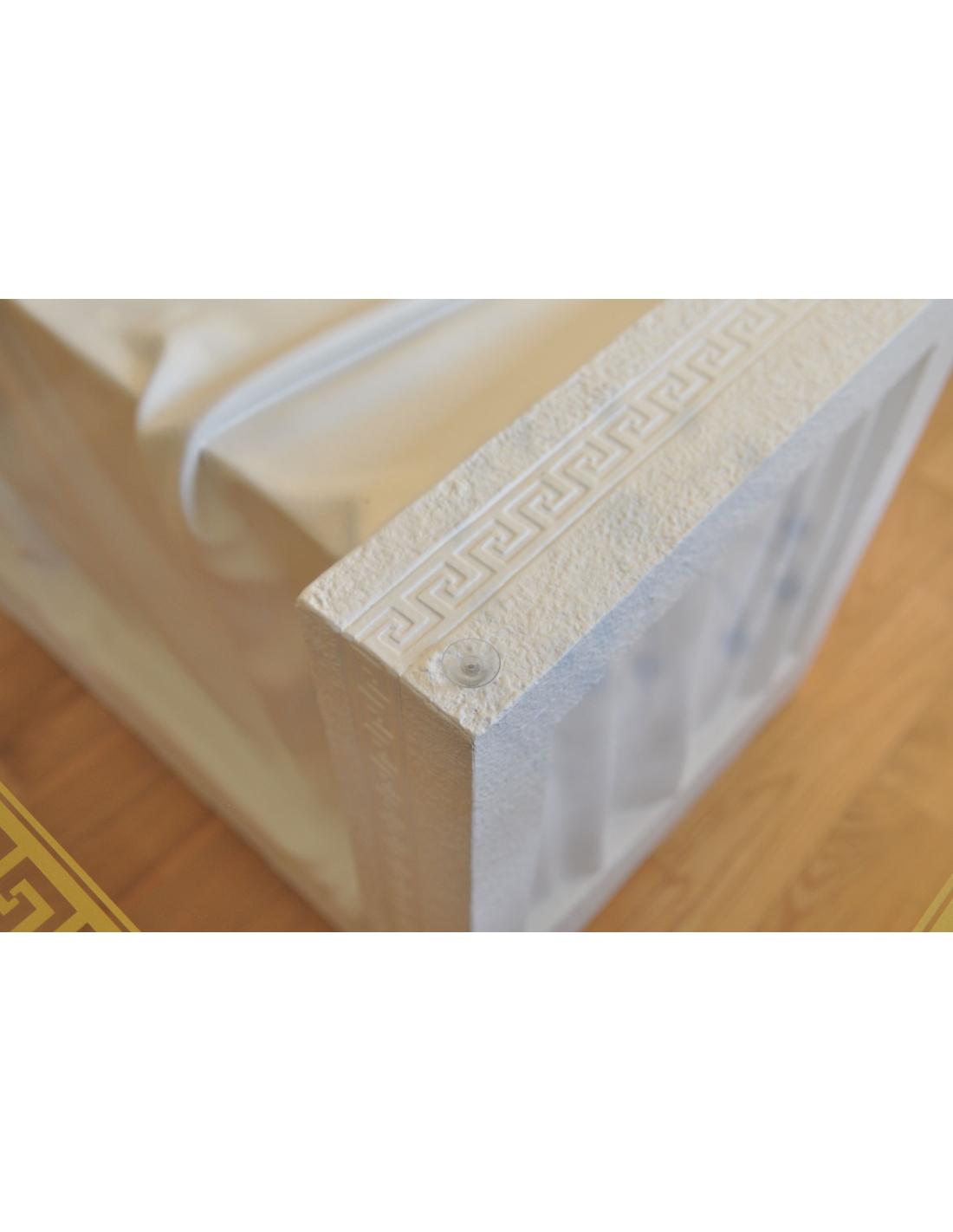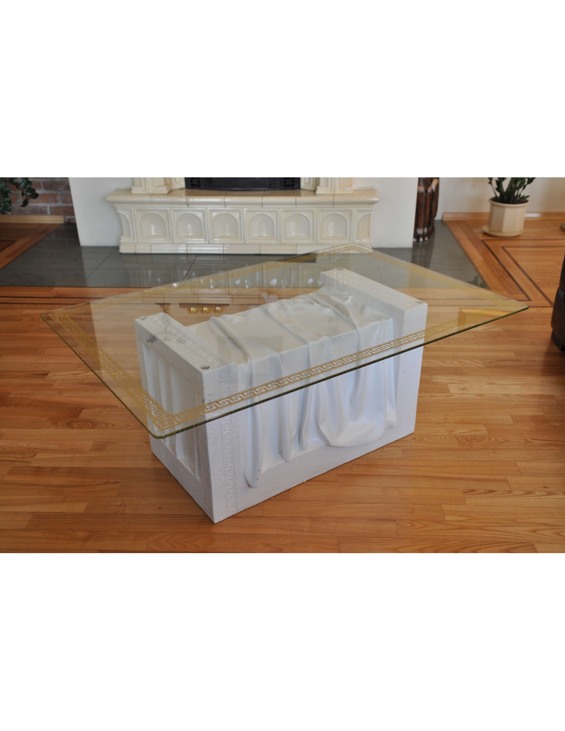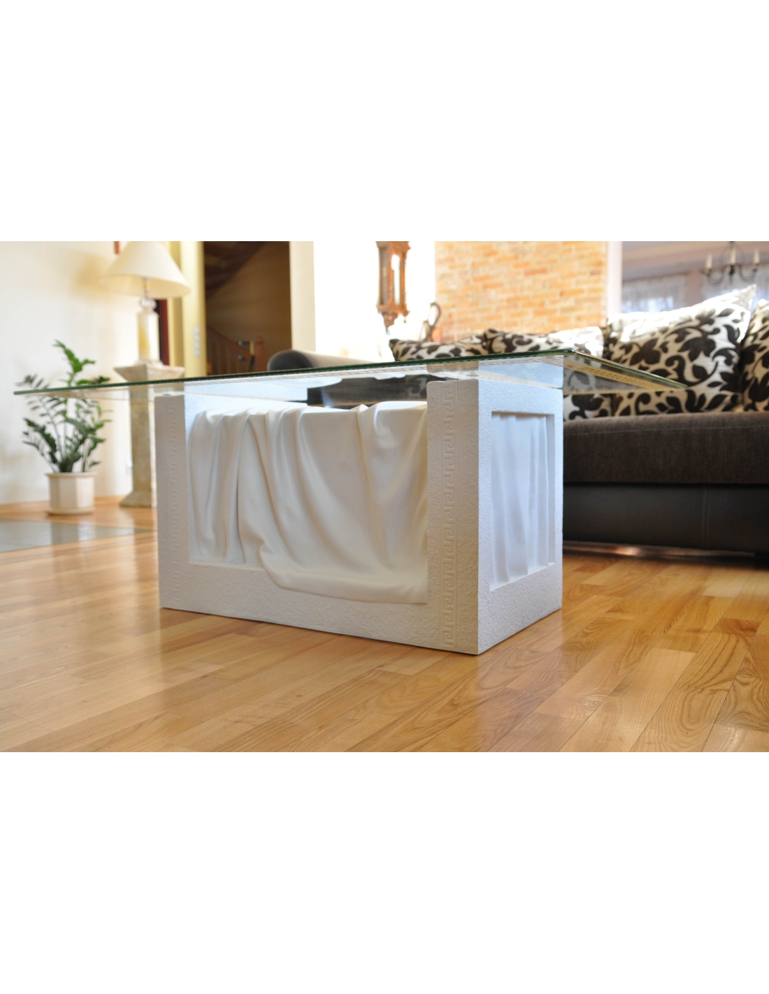 Cette table basse élégante et fonctionnelle de style grec apportera une touche de sophistication à votre intérieur. Elle est dotée d'un piètement robuste en résine de haute qualité, d'une finition blanche immaculée, orné d'un motif grec classique et d'un magnifique drapé sculpté imitant le tissu. Un épais plateau en verre transparent repose sur le piètement, offrant une surface spacieuse et résistante pour vos essentiels de salon. Alliant design intemporel et fonctionnalité, cette table basse est parfaite pour ajouter une touche d'élégance classique et de luxe à votre décoration intérieure.