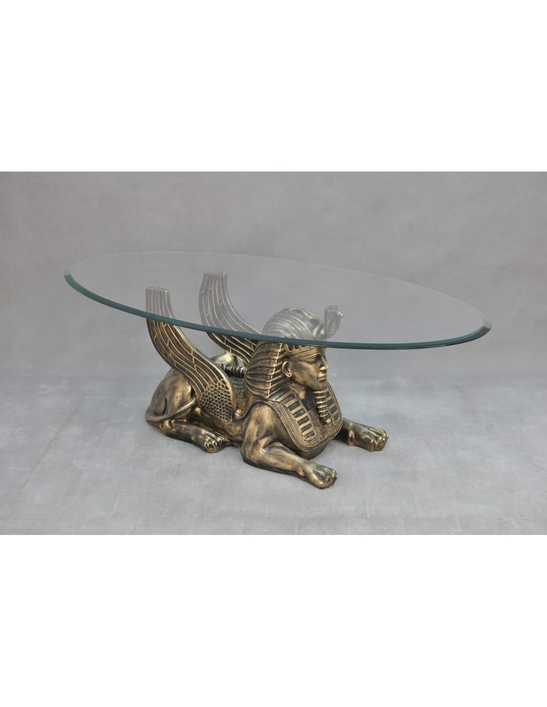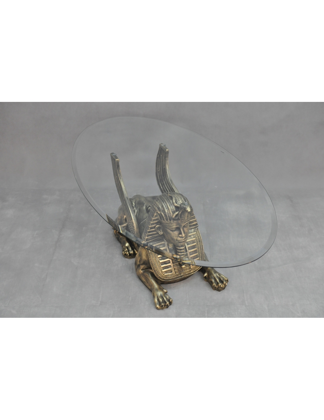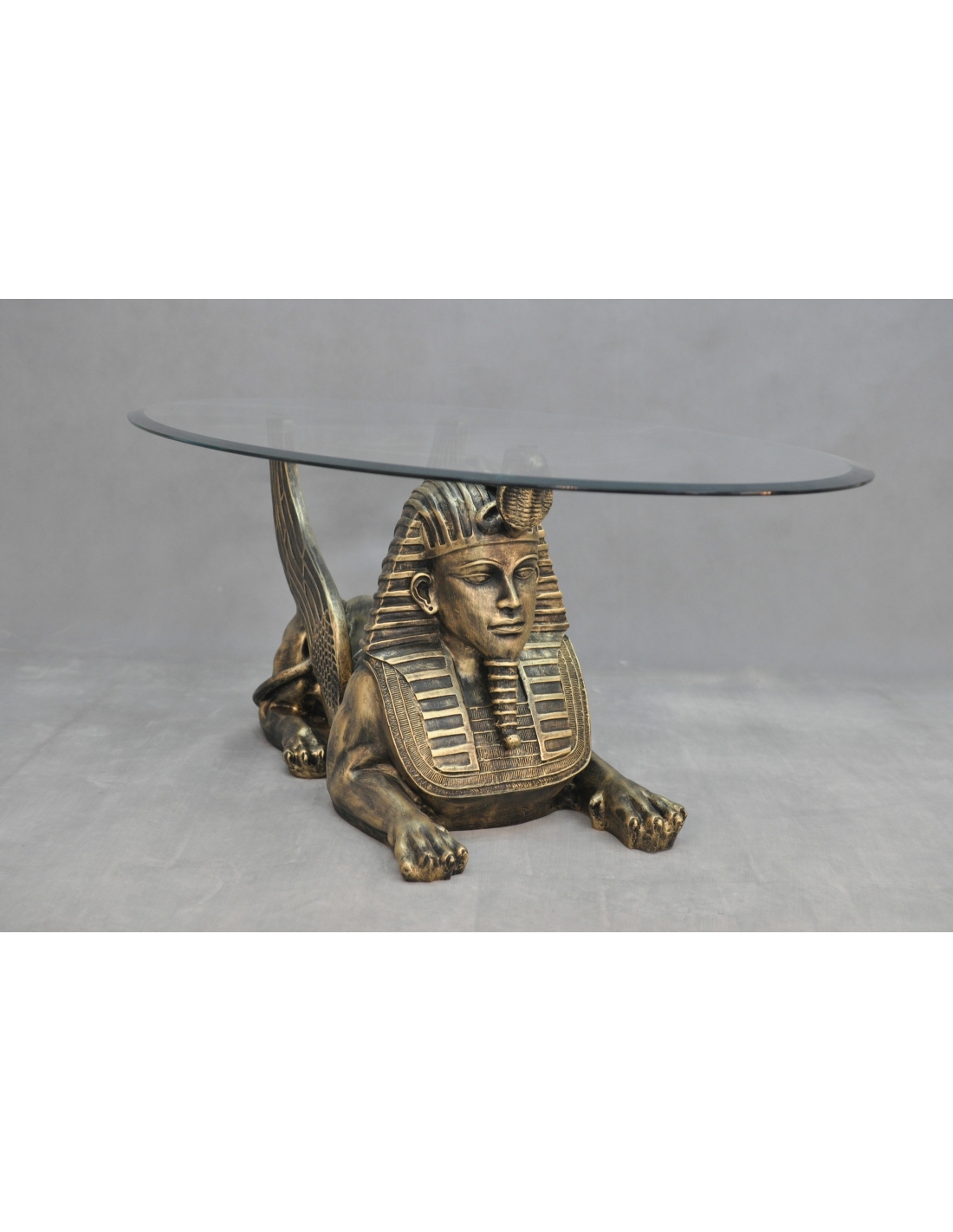 Table en verre avec statue de sphinx, H: 0,5 m