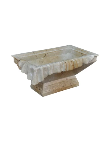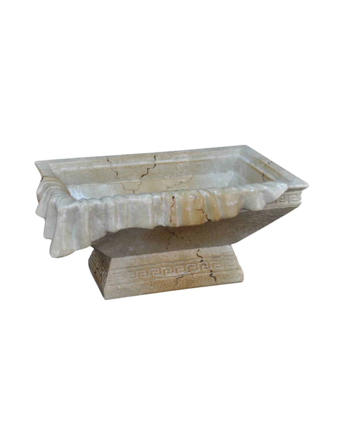 Imprimant une touche d'histoire et d'élégance, cette vasque décorative est un véritable témoignage du savoir-faire artisanal du marbre antique. Dotée de draperies magnifiquement sculptées et d'une forme rectangulaire, elle allie le charme intemporel du design grec et classique. Fabriquée en résine de haute qualité, sa finition imite parfaitement l'aspect naturel du marbre, ajoutant une touche de grandeur et de sophistication à tout espace. Idéale comme vase décoratif ou pièce d'art indépendante, elle rehaussera l'esthétique de votre maison ou de votre bar par sa présence gracieuse et distinguée.