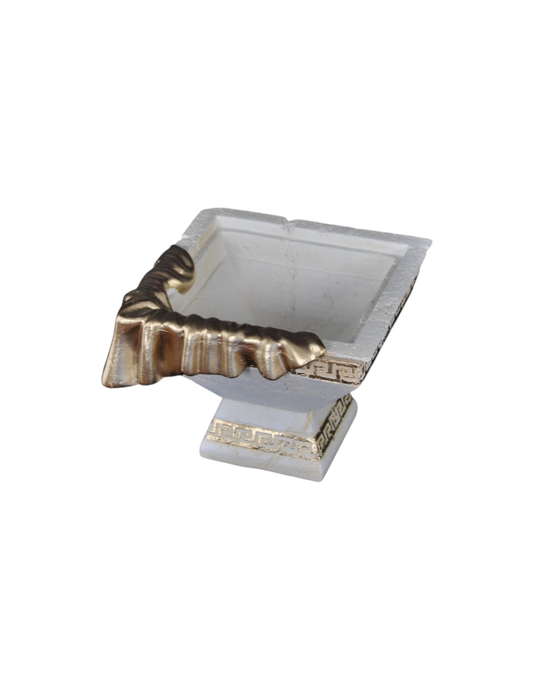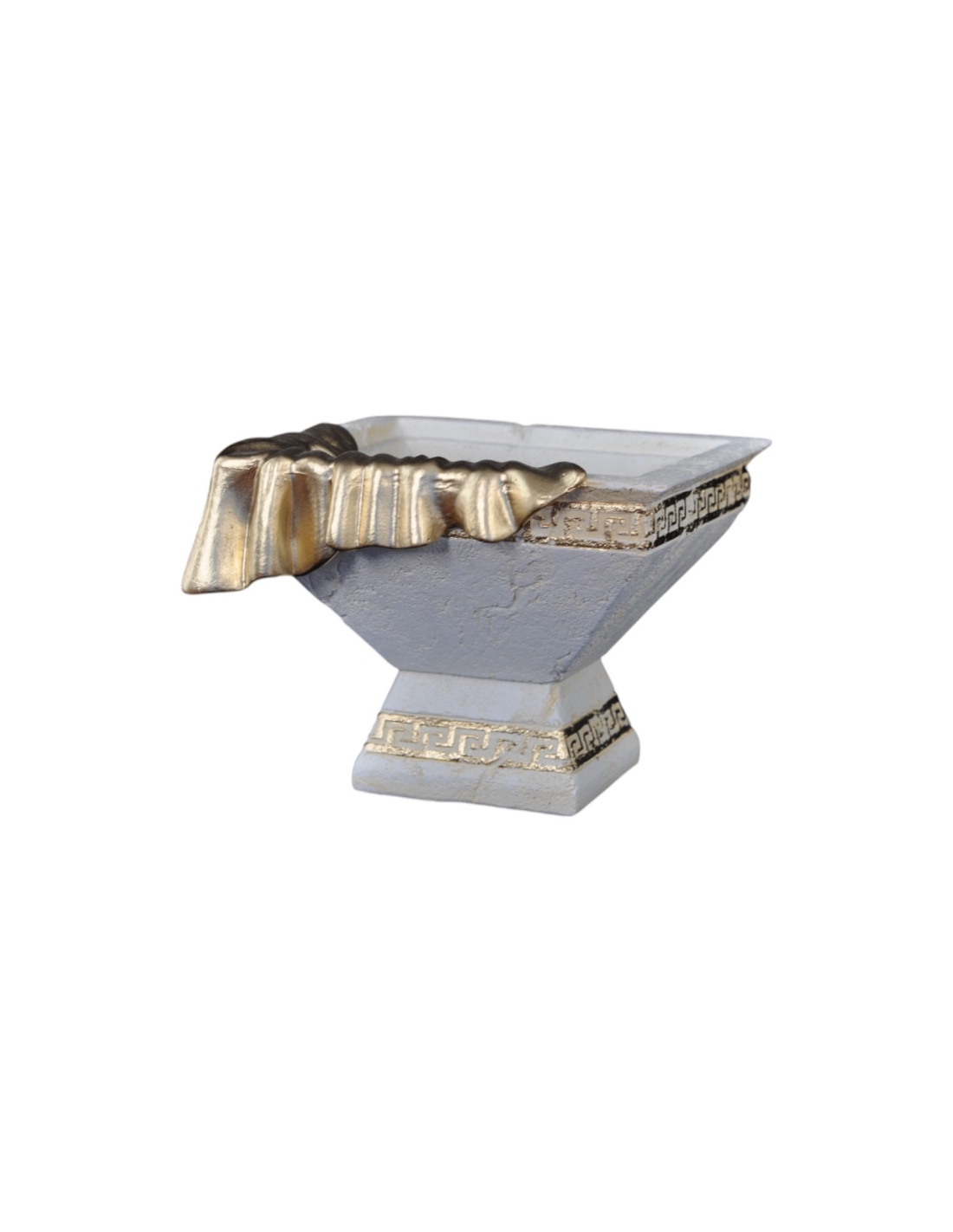 Vasque décorative blanche avec draperie de style antique et ornements or foncé, H: 0,25 m