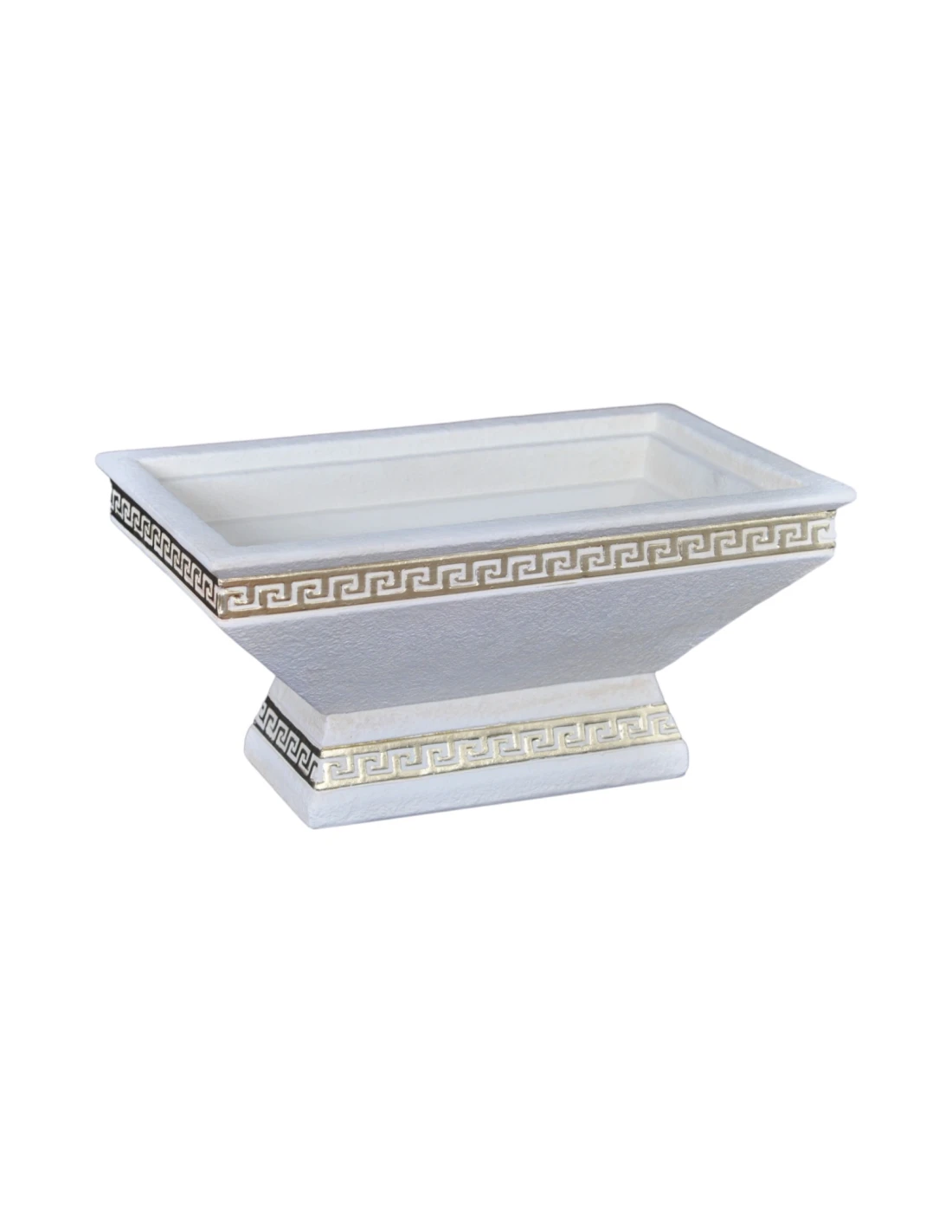 Vasque rectangulaire blanche avec ornements dorés, style Grèce antique, H: 0,39 m