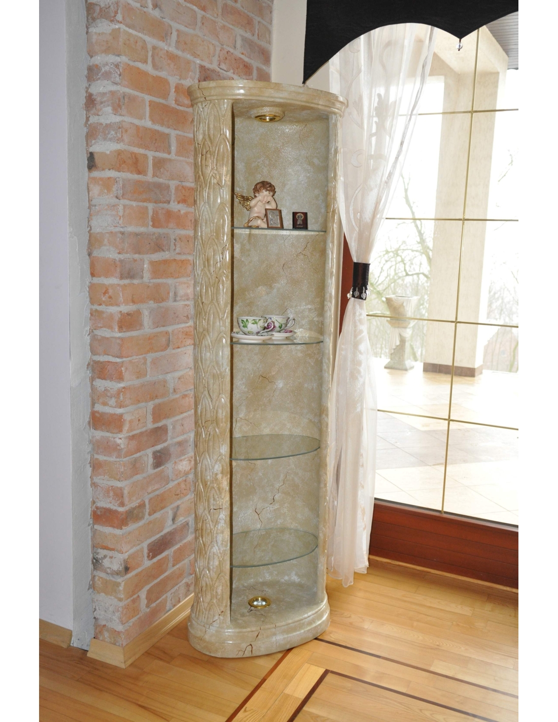 Cette vitrine sophistiquée de style grec est une pièce intemporelle conçue pour sublimer l'esthétique de votre intérieur. Fabriquée à partir d'un mélange de résine et de verre de haute qualité, elle présente une magnifique finition marbrée à l'élégance classique. Son design épuré, en forme de colonne, est complété par des étagères en verre transparent, offrant un écrin idéal pour vos précieux objets. Parfaite pour ajouter une touche de grandeur antique et un espace d'exposition pratique, cette étagère apportera une touche d'élégance à tout intérieur.